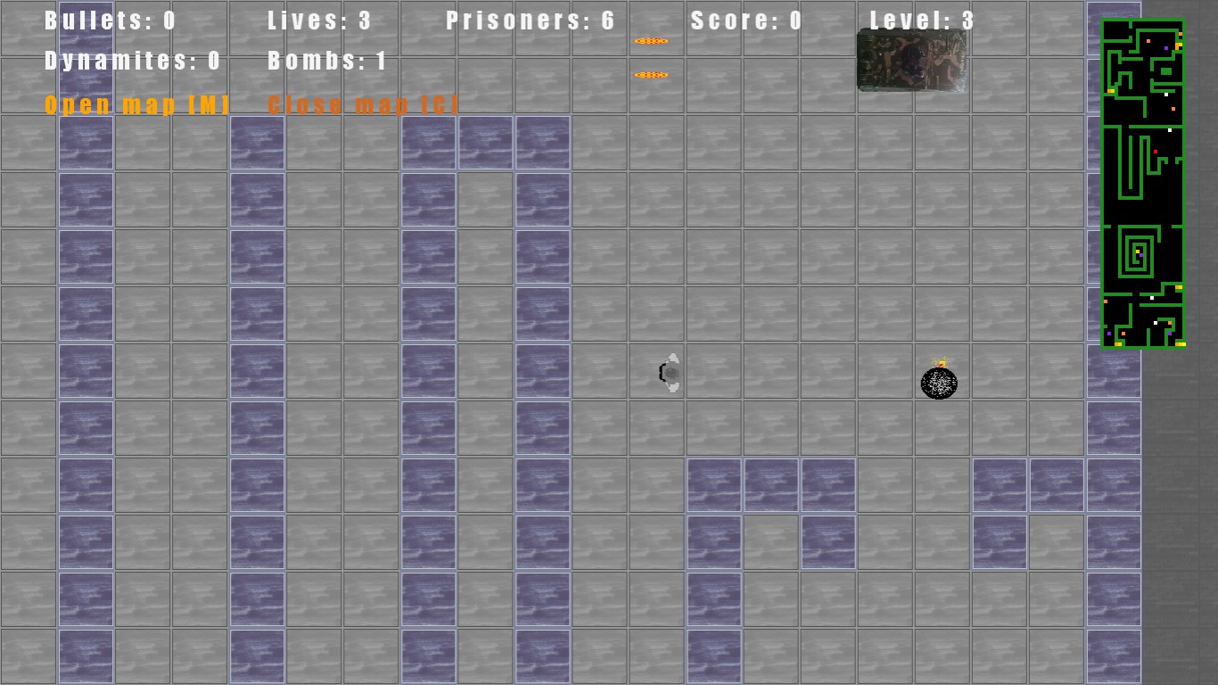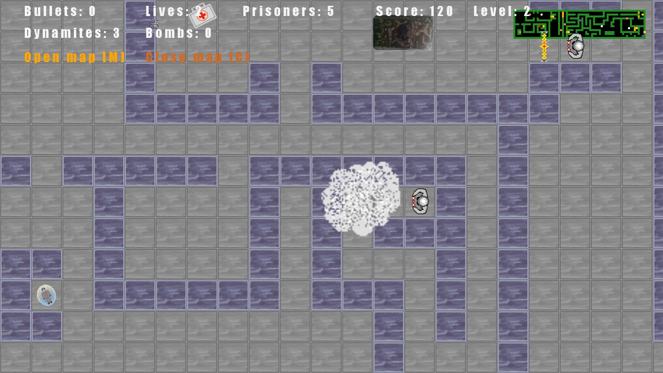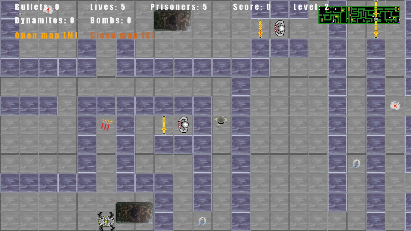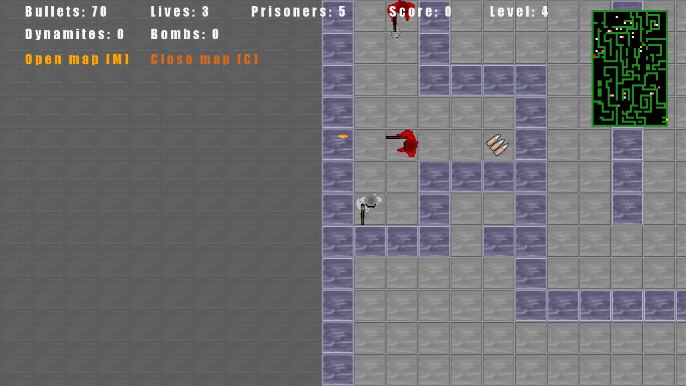 Open the map and find your way, rescue prisoners, face up to ghosts, warriors robots and more, collect various weapons and power ups , destroy doors thanks to dynamite, launch bomb to destroy tanks.