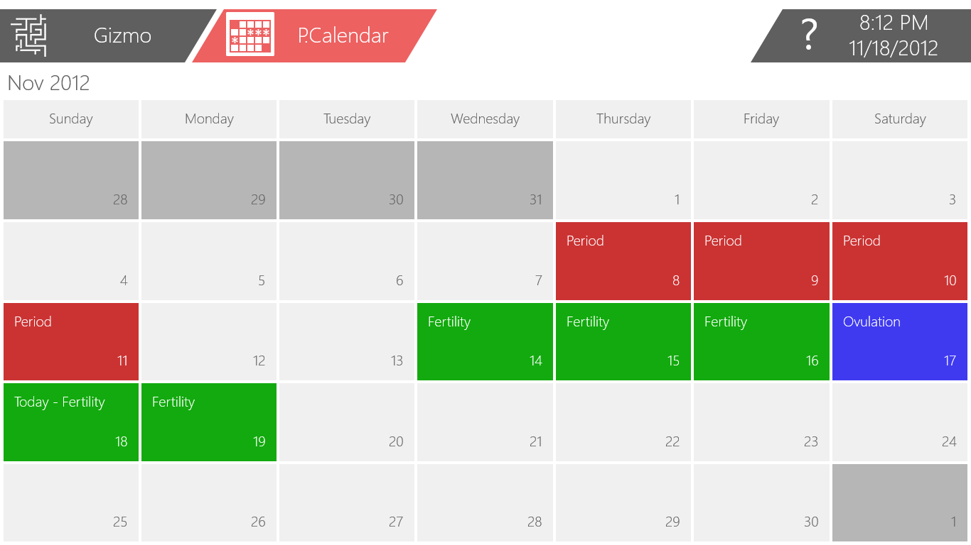 Whether you're planning a family or your next vacation, the P.Calendar Gizmo is the easiest way to see when you'll be on your period and when you'll be most fertile! Simply add in the date of your last period and you'll never have to guess again.