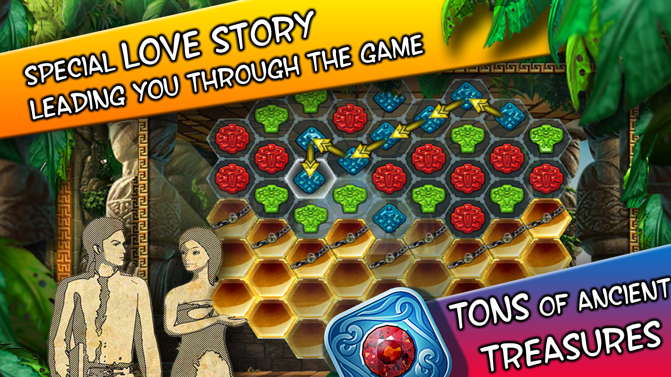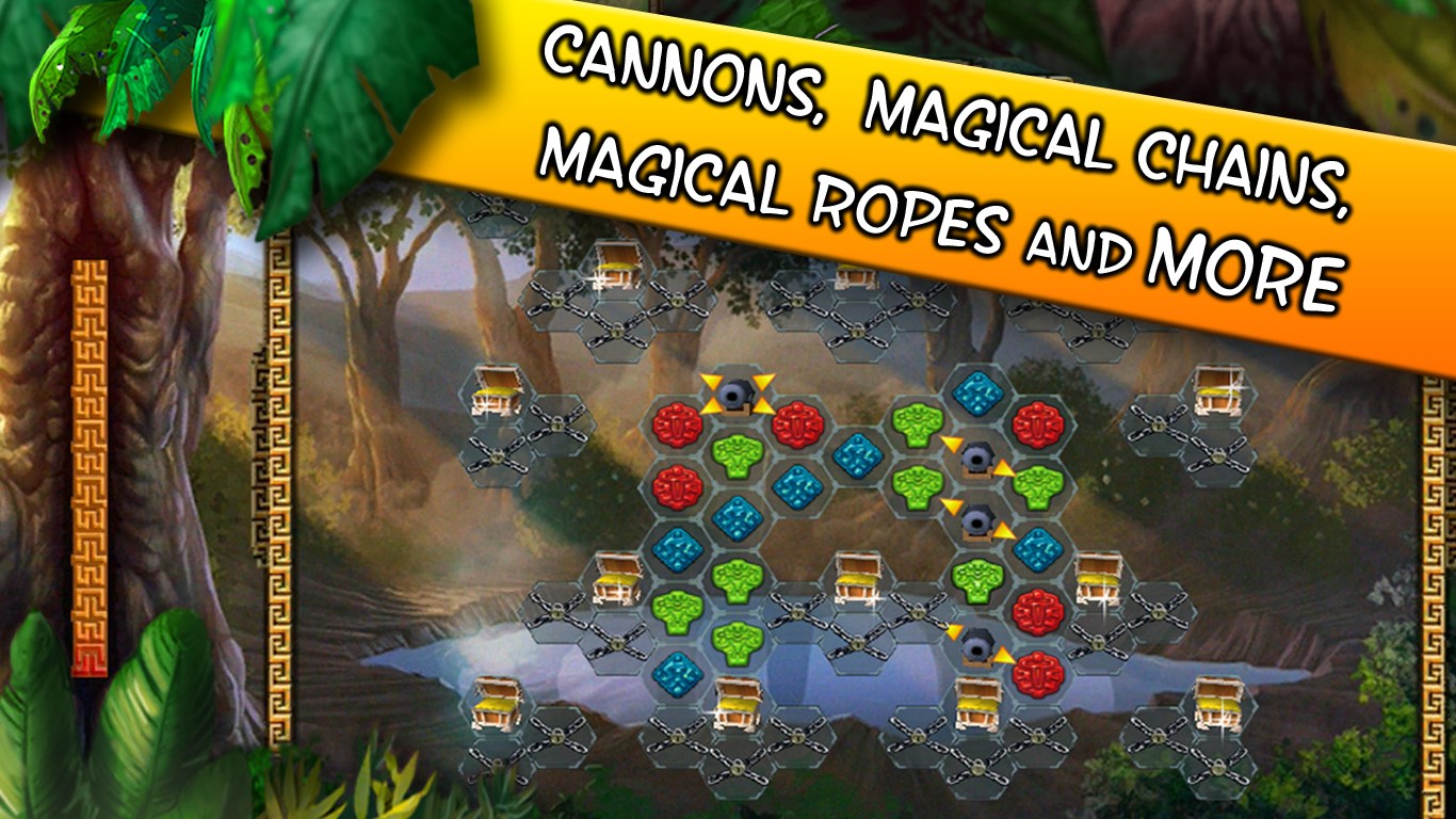 300 unique levels3 levels of difficulty: easy, medium and hardConnect as many adjacent gems as you can, not only horizontally and verticallyCannons, magical chains, magical ropes and many more bonusesA variety of power-up and special gemsBonus arcade gameSpectacular love story leading you through the gameTons of ancient treasures