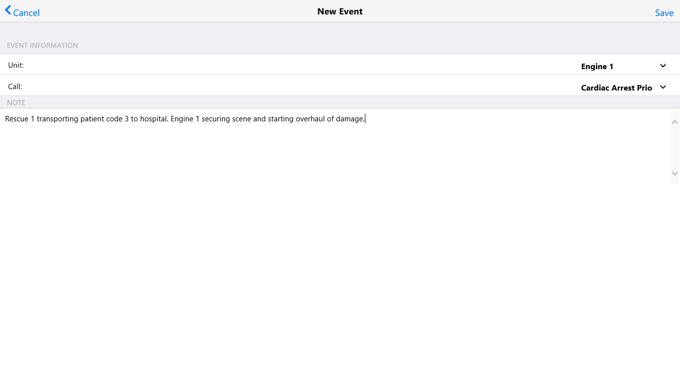 Online and Offline Ability for Appratuses to track eventsCall and Dispatch Information (CAD)Geolocation of events and Call MappingControl multiple units from one device (allowing personnel/devices to be portable)Easily switch calls and submit statuses for non-call events