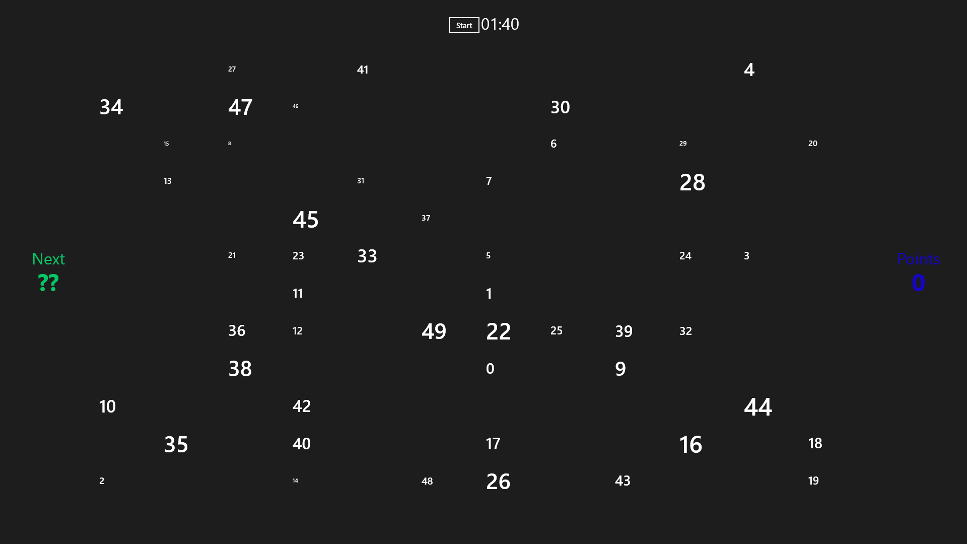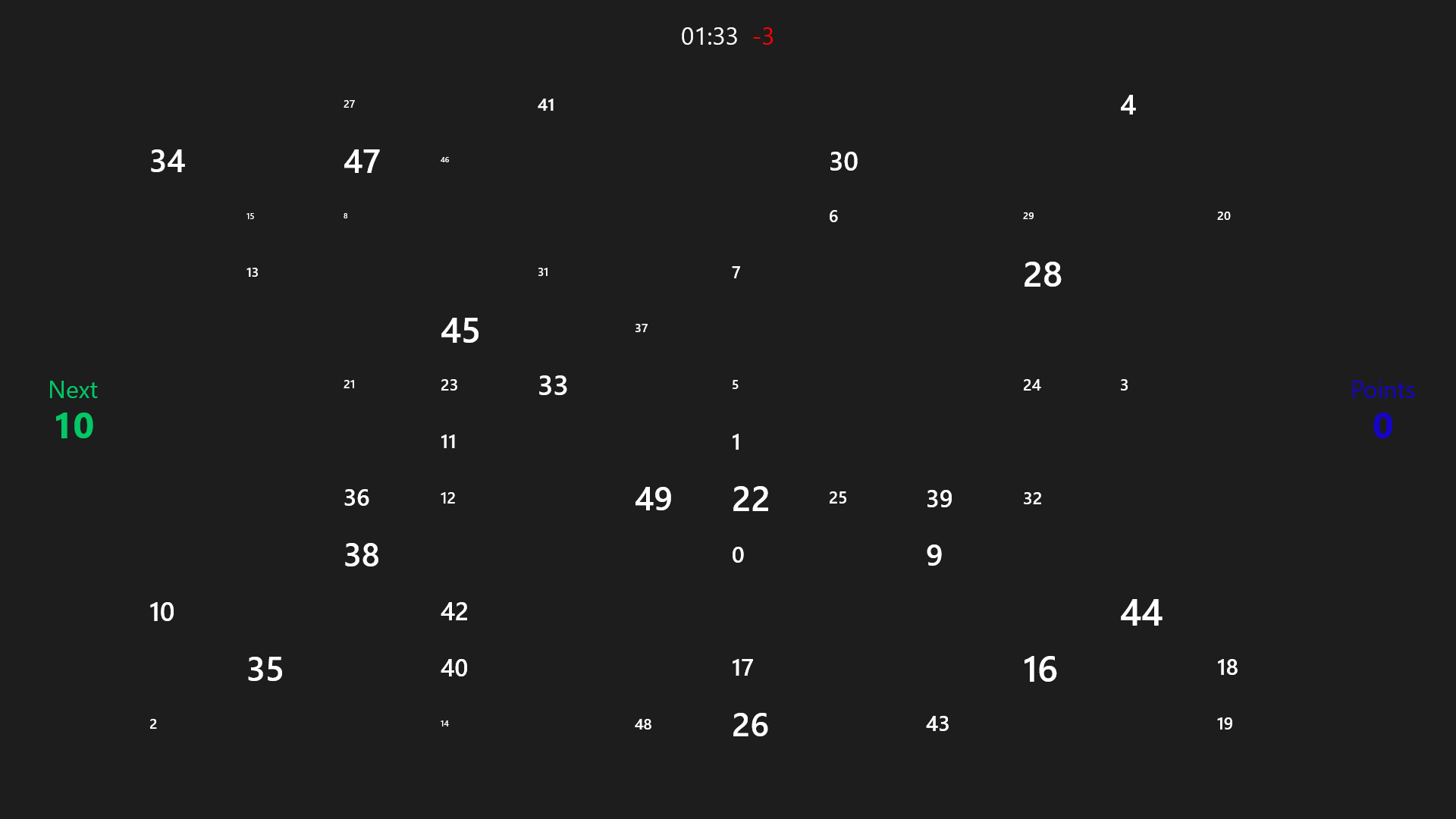 You have to find as much as possible the given numbers. The more number you find, more point you will get.