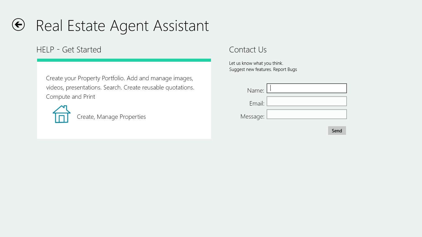 The Real Estate Agent Assistant (REAA) Application for Windows 8.1 was developed to augment sales and marketing services of Real Estate Agents, Professionals, and Practitioners. The application provides sales and marketing agents with a tool to allow them to create digital sales materials to present to clients. REAA also enables agents to compute for and print payment plans and amortization schemes to use on sales calls and presentations.