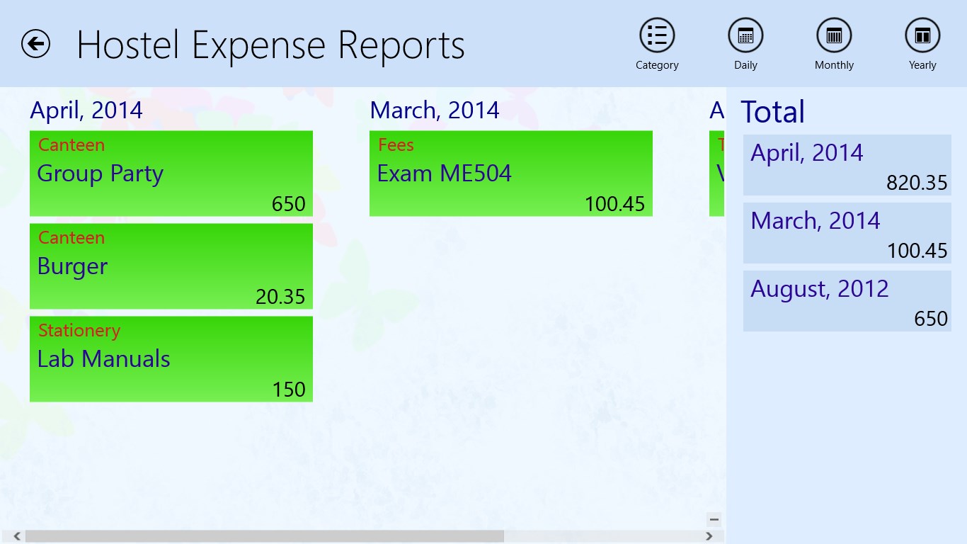 For example, you can keep a track on how much money did you spend after your child's education in past years, or how much money did you spend in your work-place's canteen in this week. Or even more, how much did you earn from any particular source in past months.