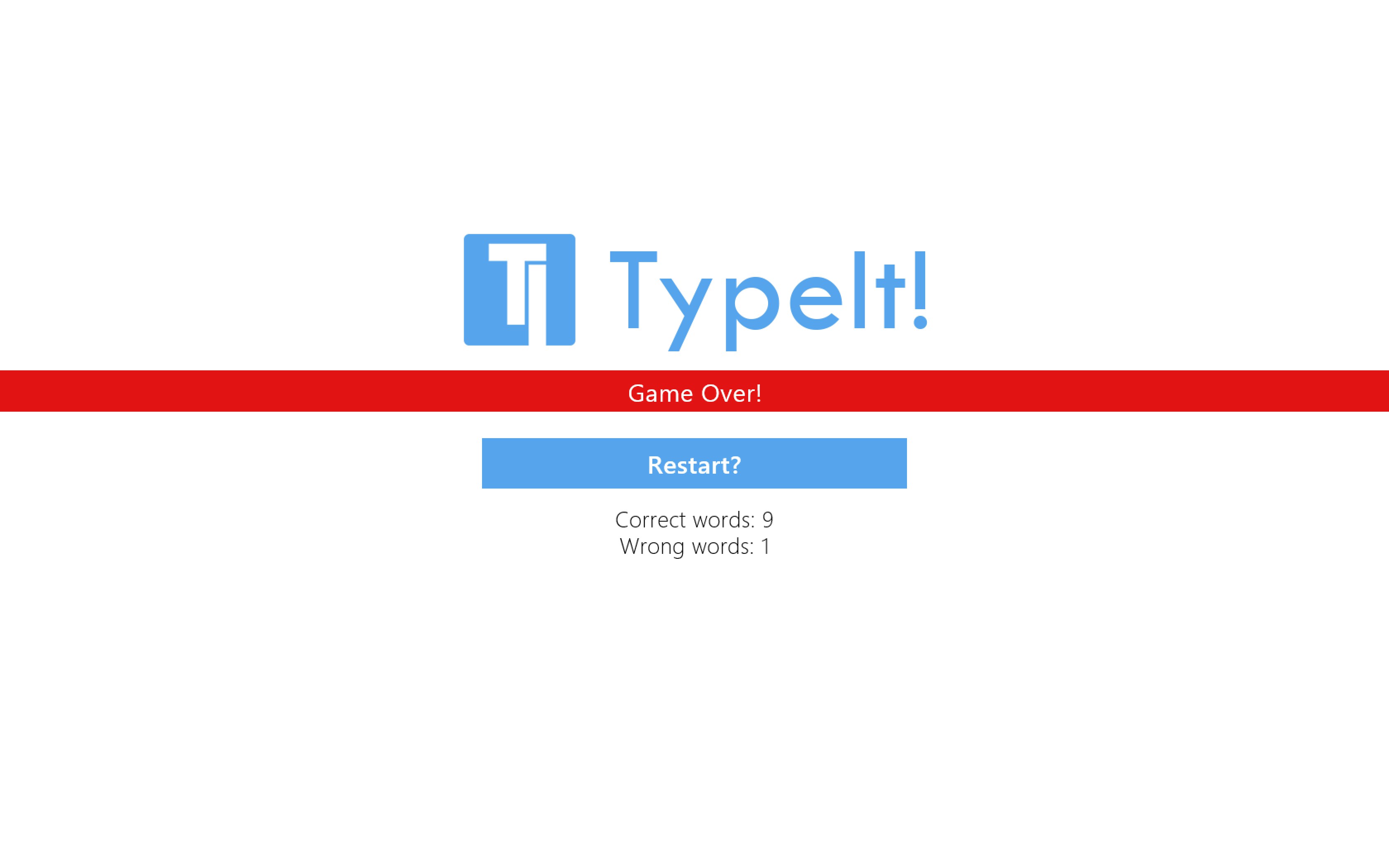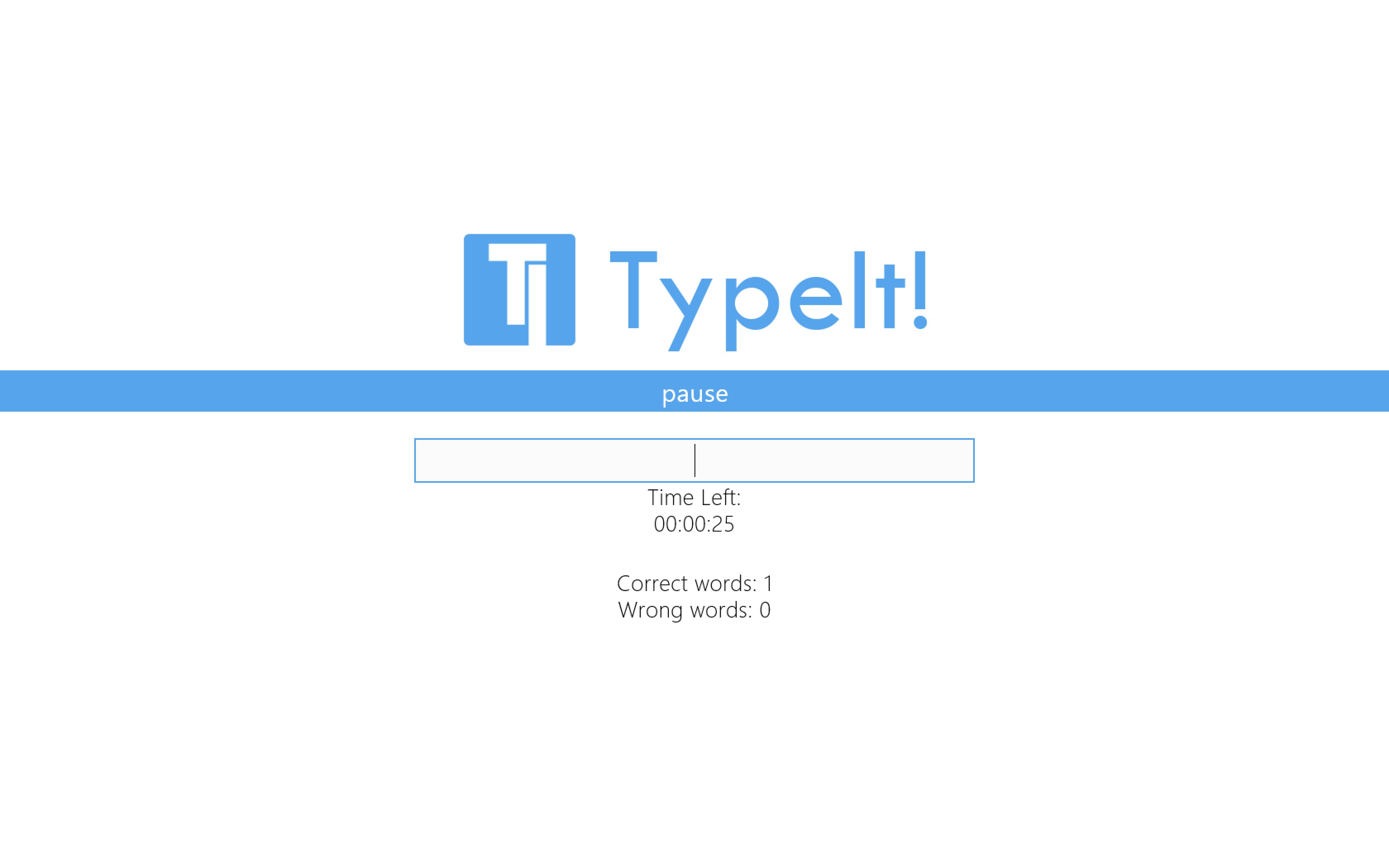 TypeIt is a great addition to your day's activities. Play TypeIt to train your typing prowess, or relieve stress from your daily workloads, or just to challenge yourself. TypeIt penalizes you heavily on mistyped words, while rewarding you with more time on correctly typed words.