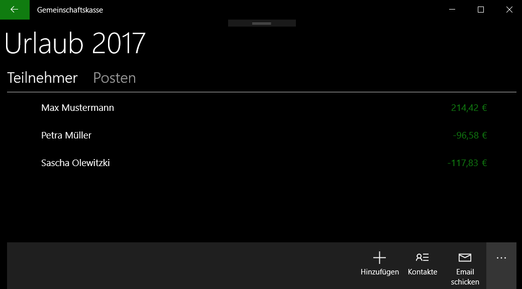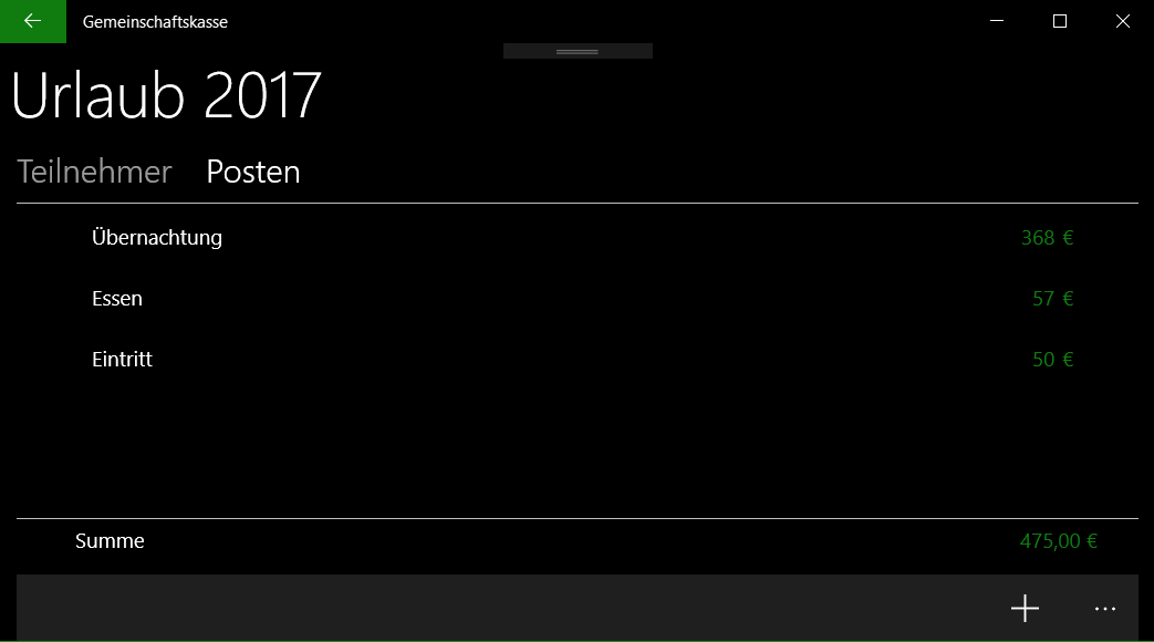 Praktische App um im Urlaub mit Freunden oder in der WG sie gemeinsamen Ausgaben zu verwalten. Das jeweilige Guthaben bzw. die Schulden bei der Gruppe werden automatisch berechnet!