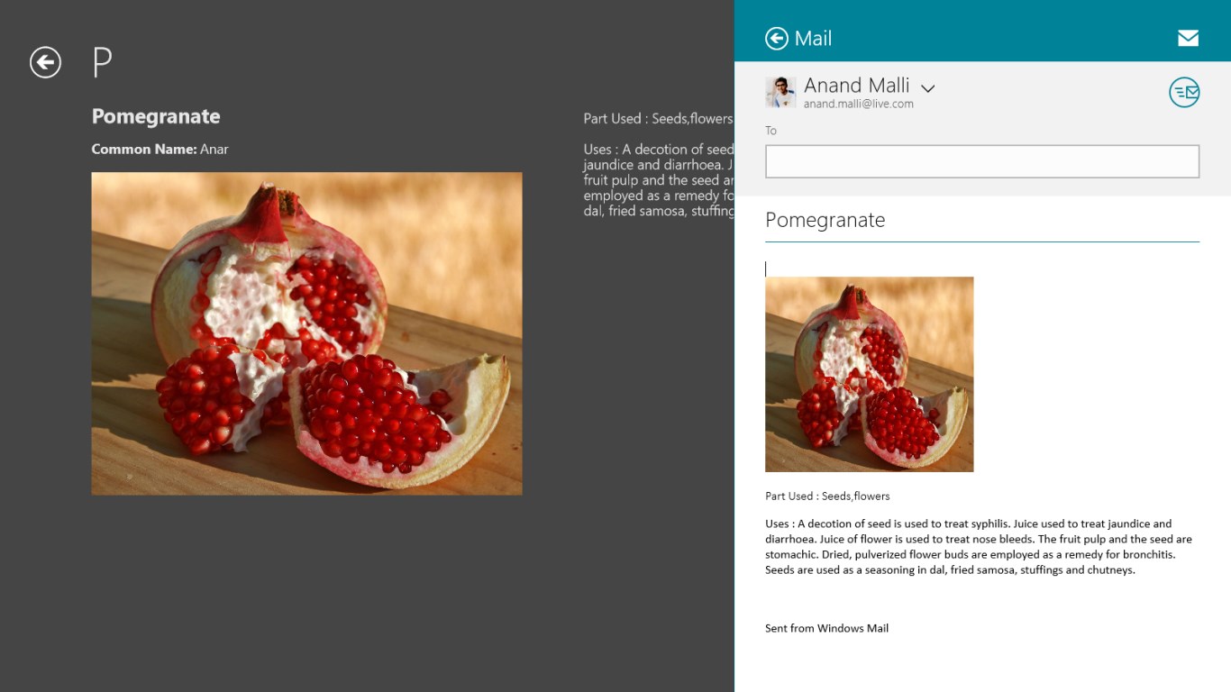 Information about plants and their medicinal usesSearch plant(s) information based on health issuesShare plant information with others using mail