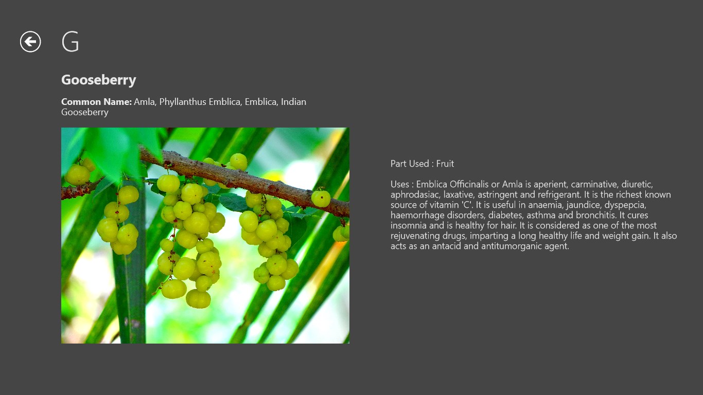 This app "Ayurvedic Plants" gives information about some of the plants and their medicinal uses. It has information about the specific part(s) of the plant and their benefits against various health issues.