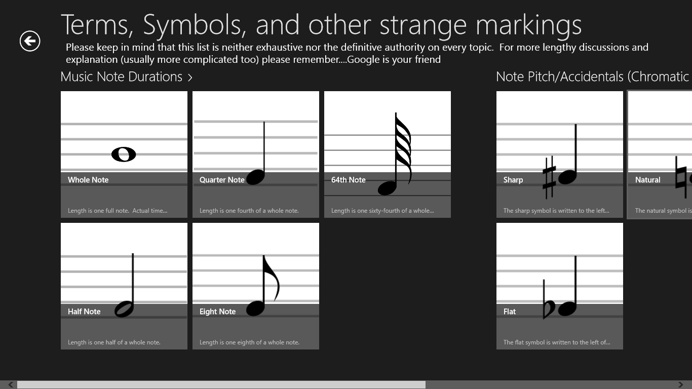 NEXT UPDATE I SUPER PROMISE will contain: full 88 keys for the piano roll, more terms and symbols for the dictionary, and possibly some customization for the metronome concerning time signatures.