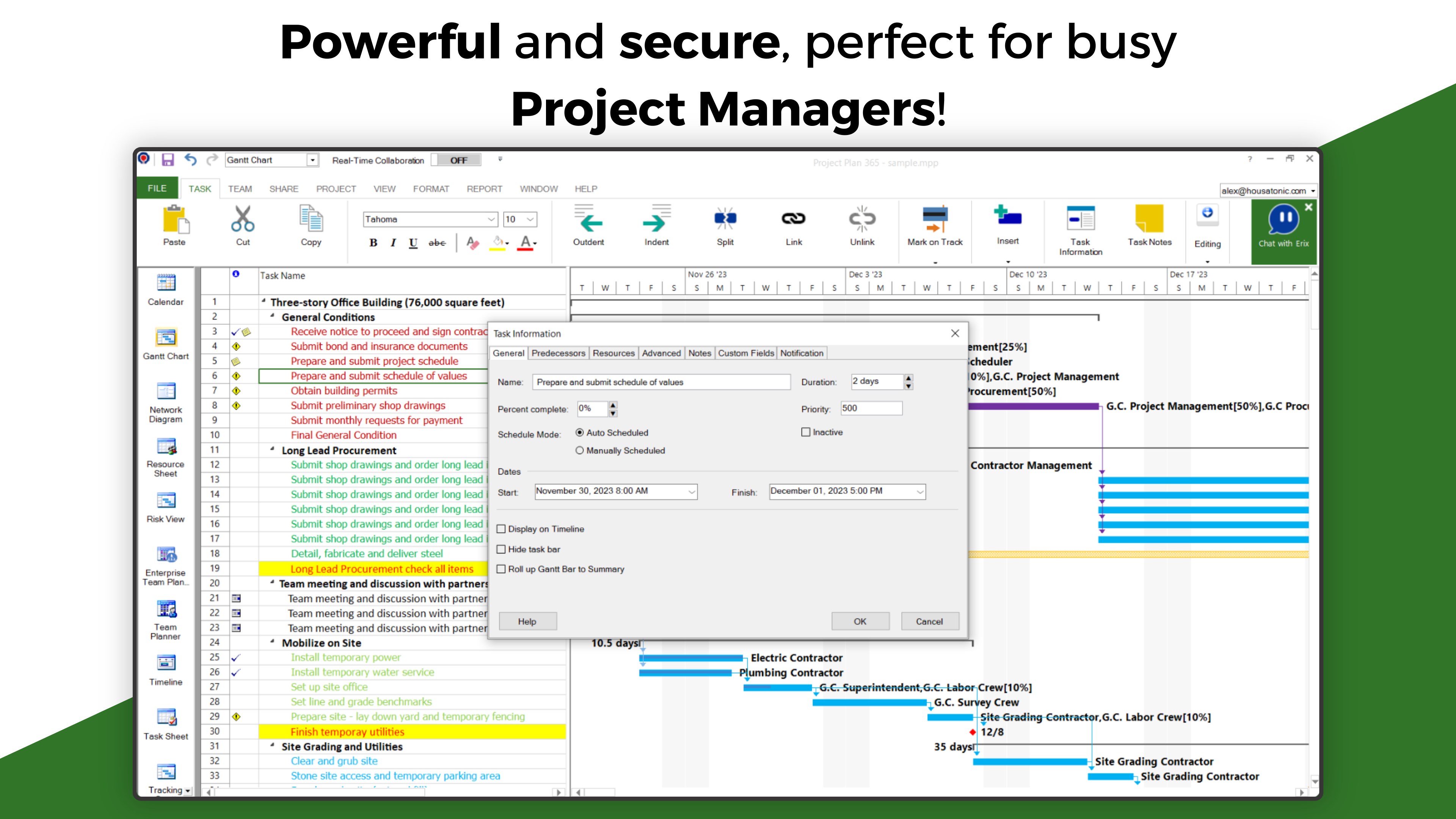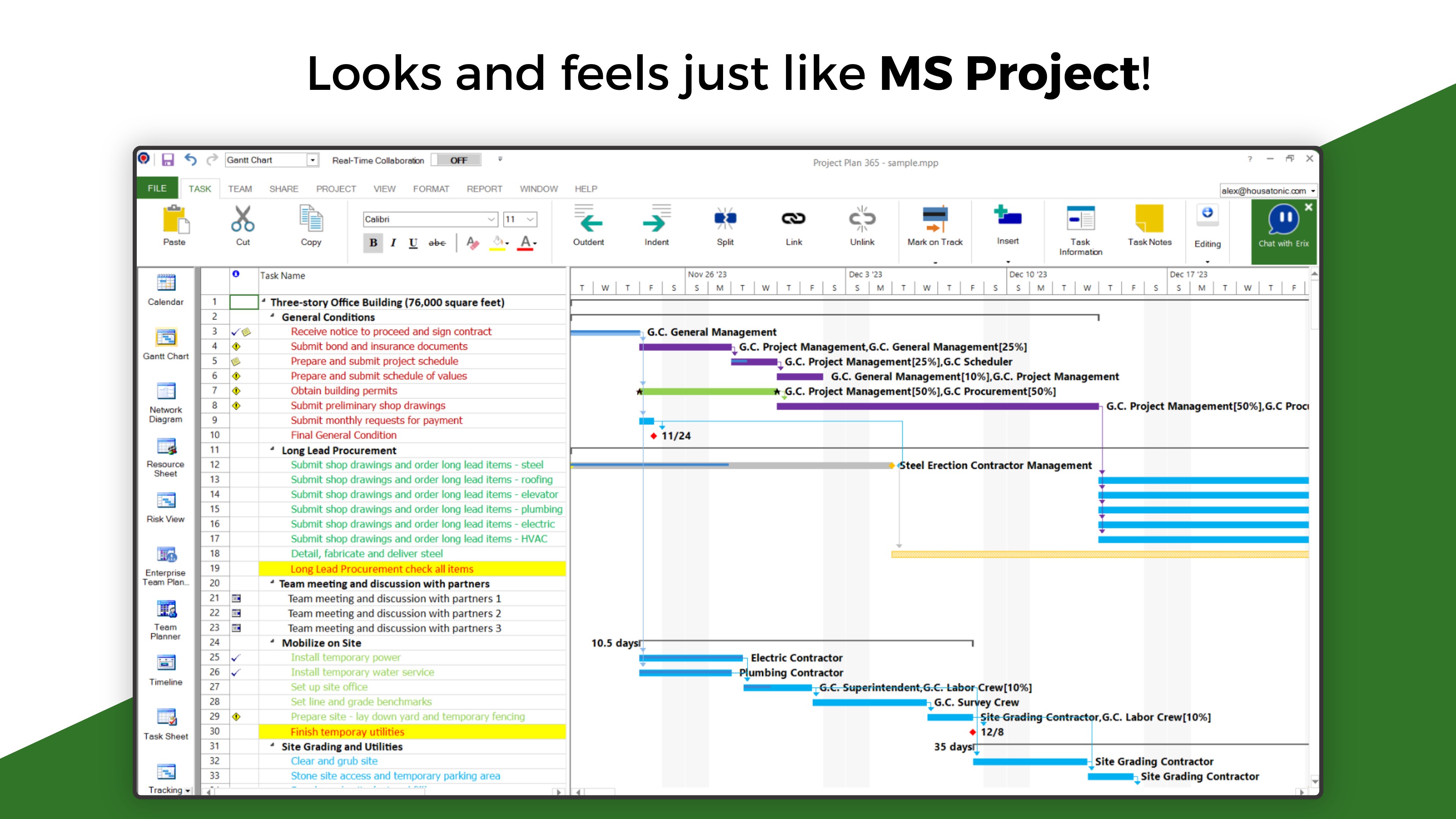 Project Plan 365 looks and feels exactly like MS Project. Consider our app an extension of MS Project designed for all platforms. It offers an intuitive approach to project planning and collaboration, making it ideal for individual Project Managers and small teams in fast-paced environments, even when spread across diverse geographic locations.