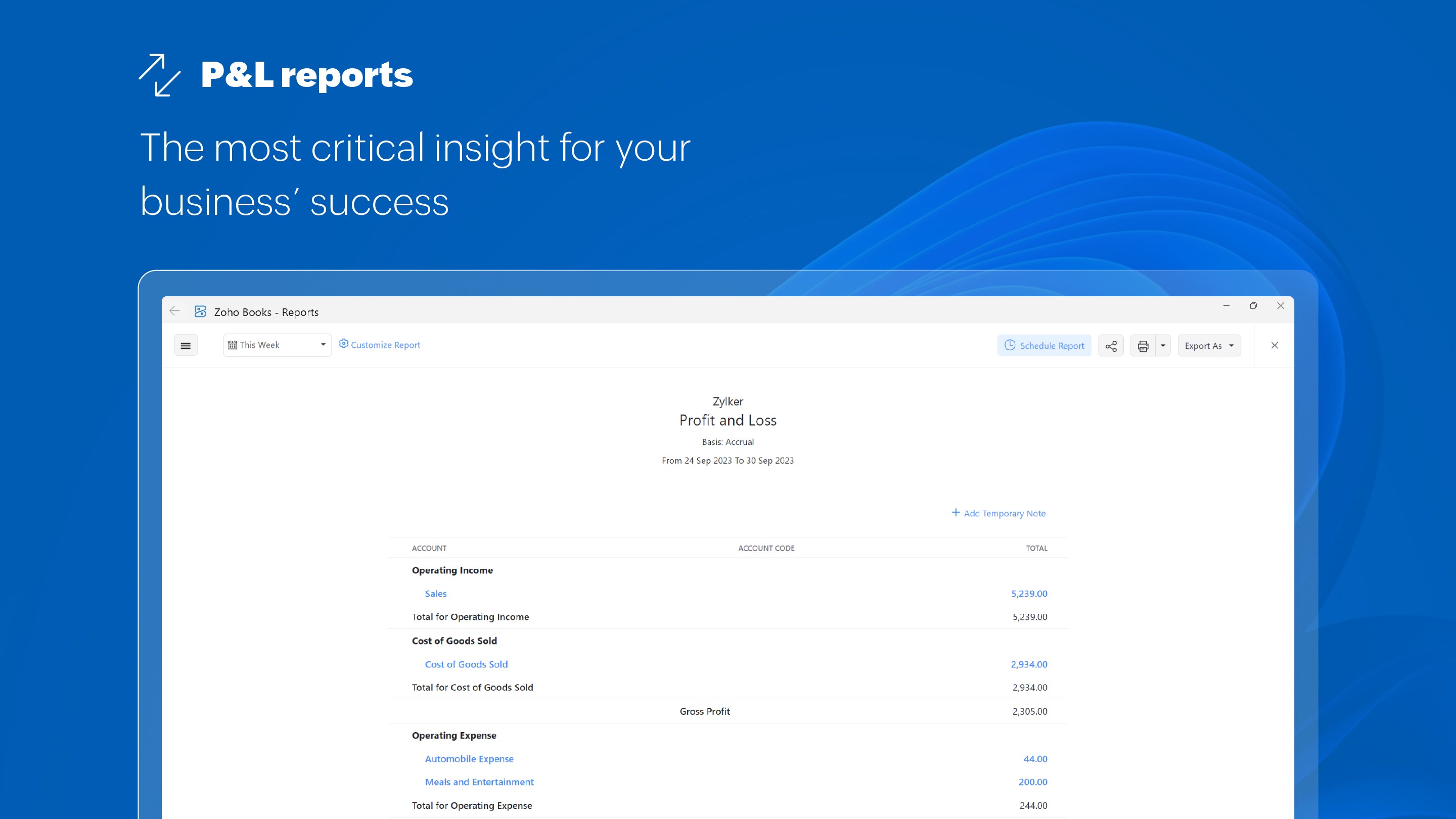 Dashboard: Get a quick overview of your business finances with the intuitive dashboard. With graphical charts, dashboard helps you understand the cash flow and other key metrics of your organization. Customers and Vendors: Manage your customers & vendors efficiently by adding them to Zoho Books; track the receivables and payables, and all their transactions in one place. Items: Add all the goods and services you sell or purchase so that you can create transactions in seconds. Invoices: Create invoices that reflect your brand. You can choose templates and send professional invoices to your customers swiftly. Estimates: Create estimates and enable your customers to accept or negotiate the estimate via the Client Portal. Credit Notes: Have money that must be returned to the customer? Create a credit note to record the amount. Apply them to the next invoice or refund them to the customer. Expenses: Record all the expenses you\’ve incurred in your business and manage them efficiently.Bills: Track the payments you owe your vendors and use payment reminders to pay them before the due date. Payments Made & Payments Received: Keep track of all the payments you\’ve made and the payments you\'ve received, effortlessly. Projects & Timesheet: Do you work on projects that are billed by the hour? Zoho Books has you covered. Create projects, log time and manage it all in Zoho Books. Chart of Accounts: Track your cash flow with ease using the default chart of accounts. Create new accounts based on your business needs and keep your books intact. Cortana: Zoho Books is Cortana ready. Talk to Cortana and account your finances, the easy way. Live Tiles: Pin important customers or projects to the Start menu and stay up-to-date on your business finance. With live tiles, accounting is only a click away. Windows Hello: Secure your financial information with Windows Hello which will let no one past it but you. Notifications: Stay updated on everything related to your organizations\’ accounting with the instant notifications. Keyboard Shortcuts: Work faster with keyboard shortcuts (hotkeys) that help you perform quick actions with a key press. Windows Ink: Jot down important notes on a report and save it as an image for future reference.
