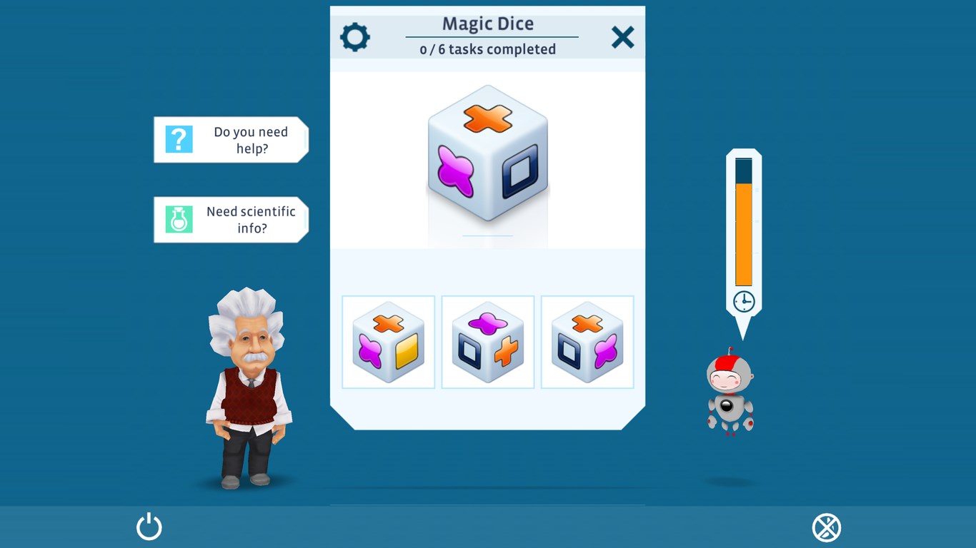 Albert Einstein and his cute little assistant Robo will support you in any aspect of the game. They will be at your side whenever you need them, explaining the different exercises and illustrating the scientific background of each exercise. They will motivate you to keep moving and to care about your mental fitness.