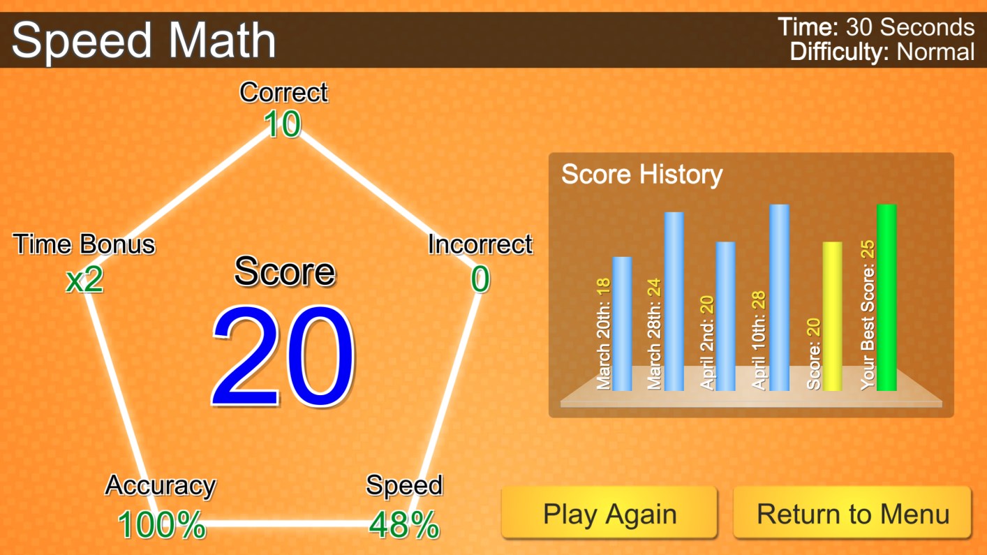Quick-play Brain Exercises - Pick an exercise type, choose difficulty and time settings and challenge yourself to set high scores (or practice without any time limits).
