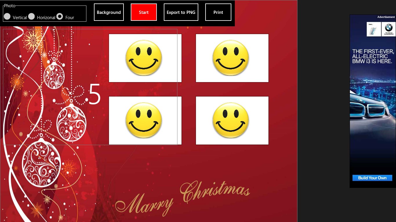 Simple Photo Booth can turn your computer into a photo booth! With any windows 8.1 computer with a webcam and you ready to go! You can create pick any background picture.