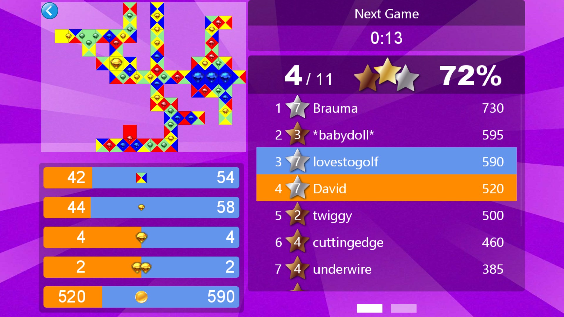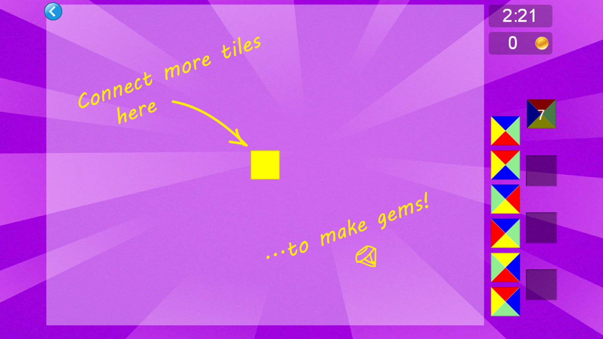 Compete against other players to connect colored tiles and create the highest scoring board of diamonds. The faster you play, the more tiles you'll get, and the bigger and better board you can build.