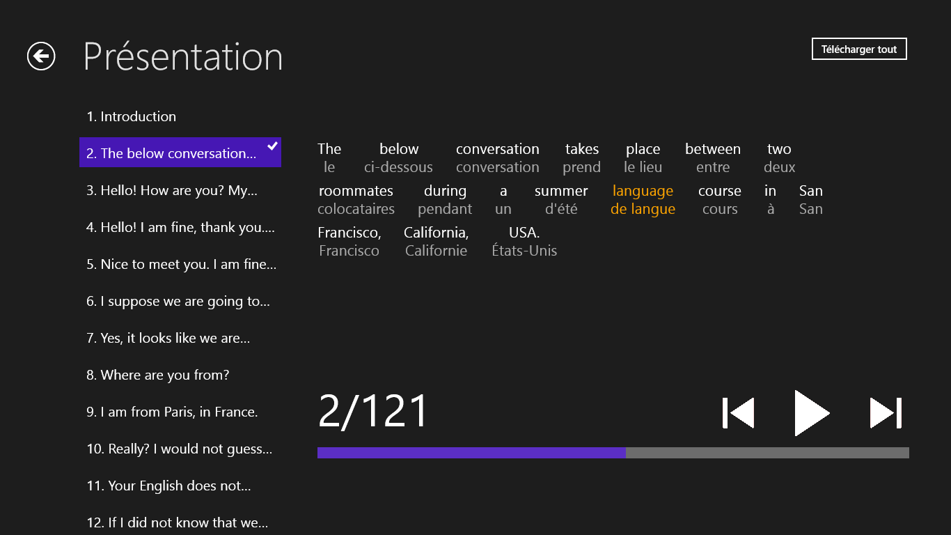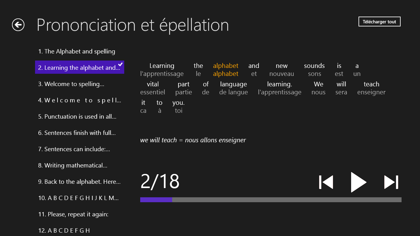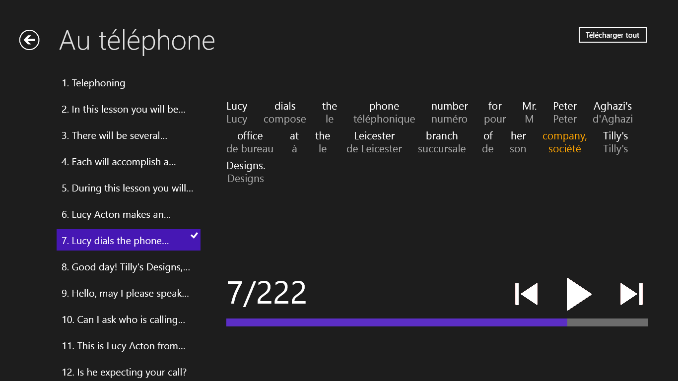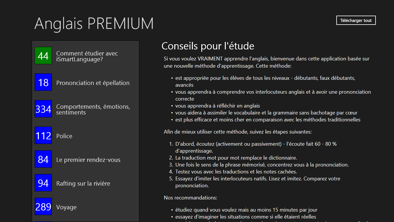L’application est accessible GRATUITEMENT sur Windows Store. Après son téléchargement dasn votre appareil et son lancement, il y a accessible entièrement le contenu de texte de toute application. En ce qui conerne les enregistements sonores, il faut les acheter.