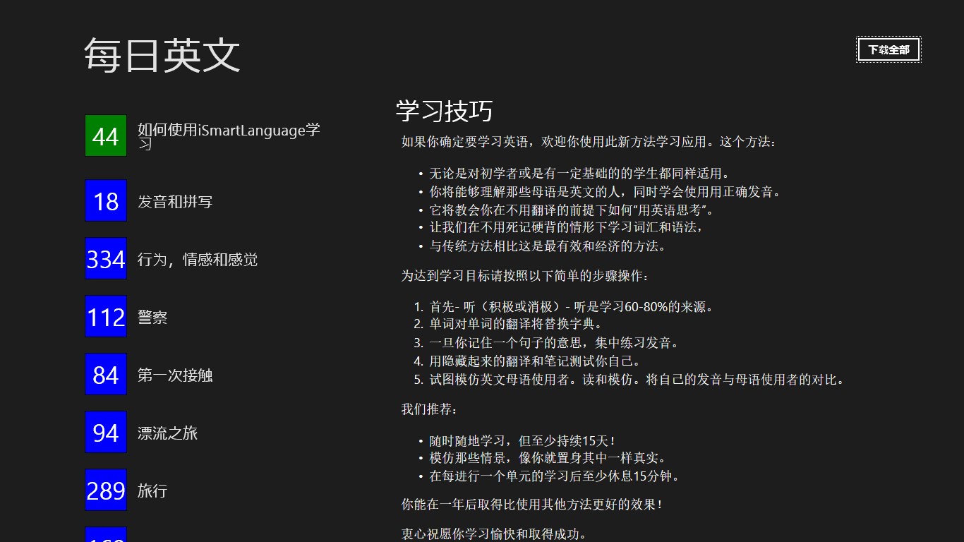 每一个日常英语或商务英语课程是美国和英国本土人精心准备的。主题是根据现实生活中是常见的情况设计。