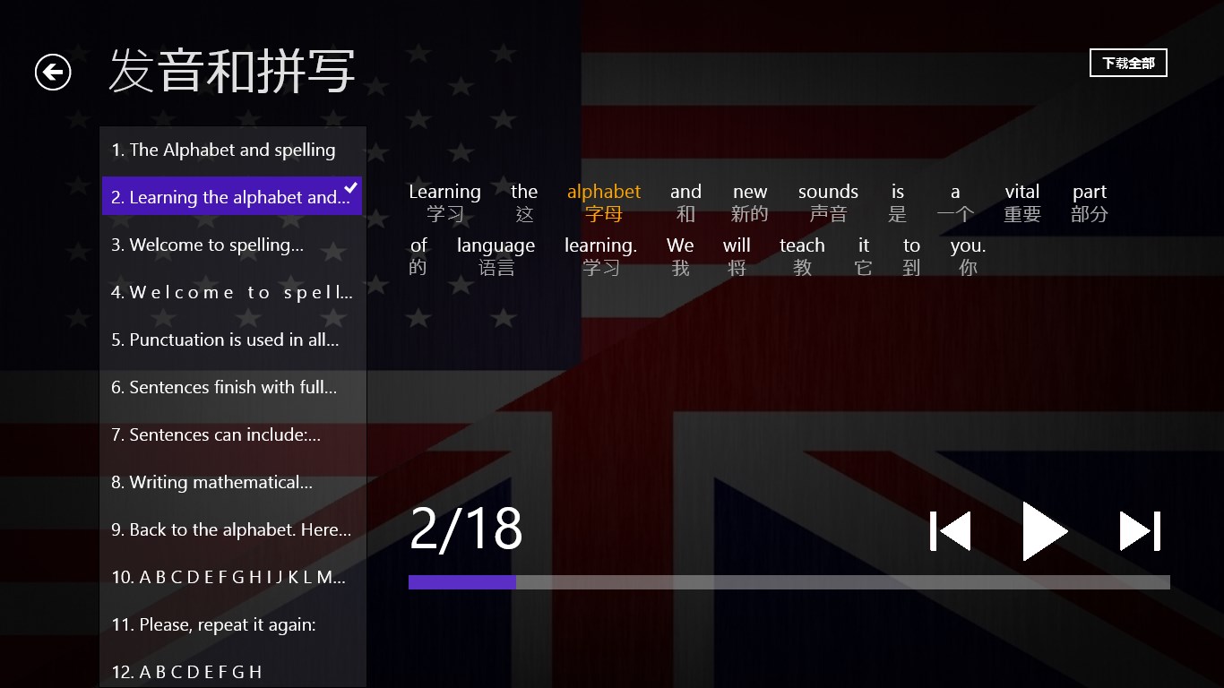使用独一无二的方法学习英语,该方法已经经过科学验证,并受到本产品全球用户的认可。这是自学者学习外语最有效的方法。可以调动97%的感知神经,并开启逻辑记忆 – 最有效的记忆方式,通过逻辑思维接受、储存信息(整个句子,故事)。儿童通过这个方式学习母语,您也来尝试一下吧?!首先倾听,然后模仿,最后将词汇连接起来造句。您只需要学会正确的发音 – 您听到的是母语发音。