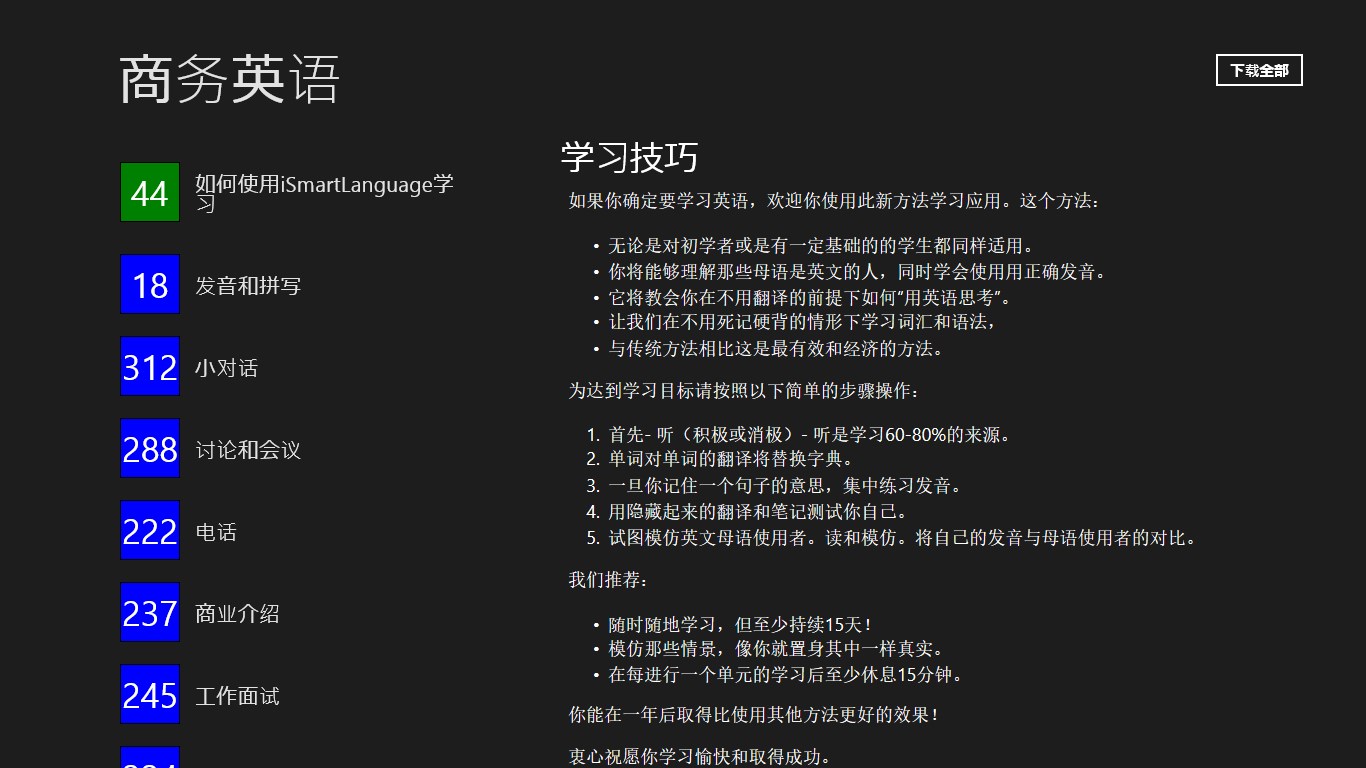 每一个日常英语或商务英语课程是美国和英国本土人精心准备的。主题是根据现实生活中是常见的情况设计。