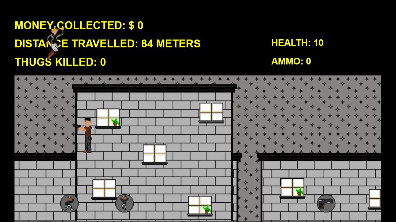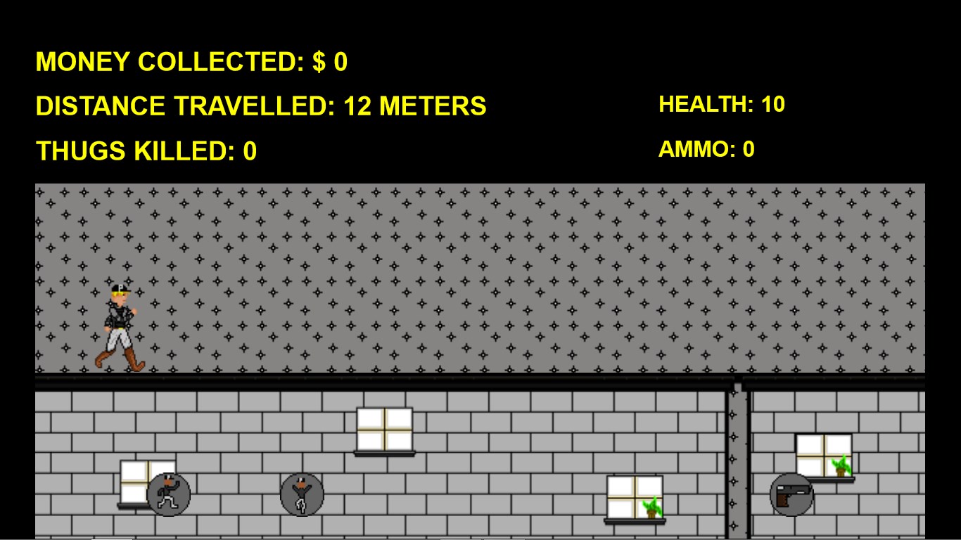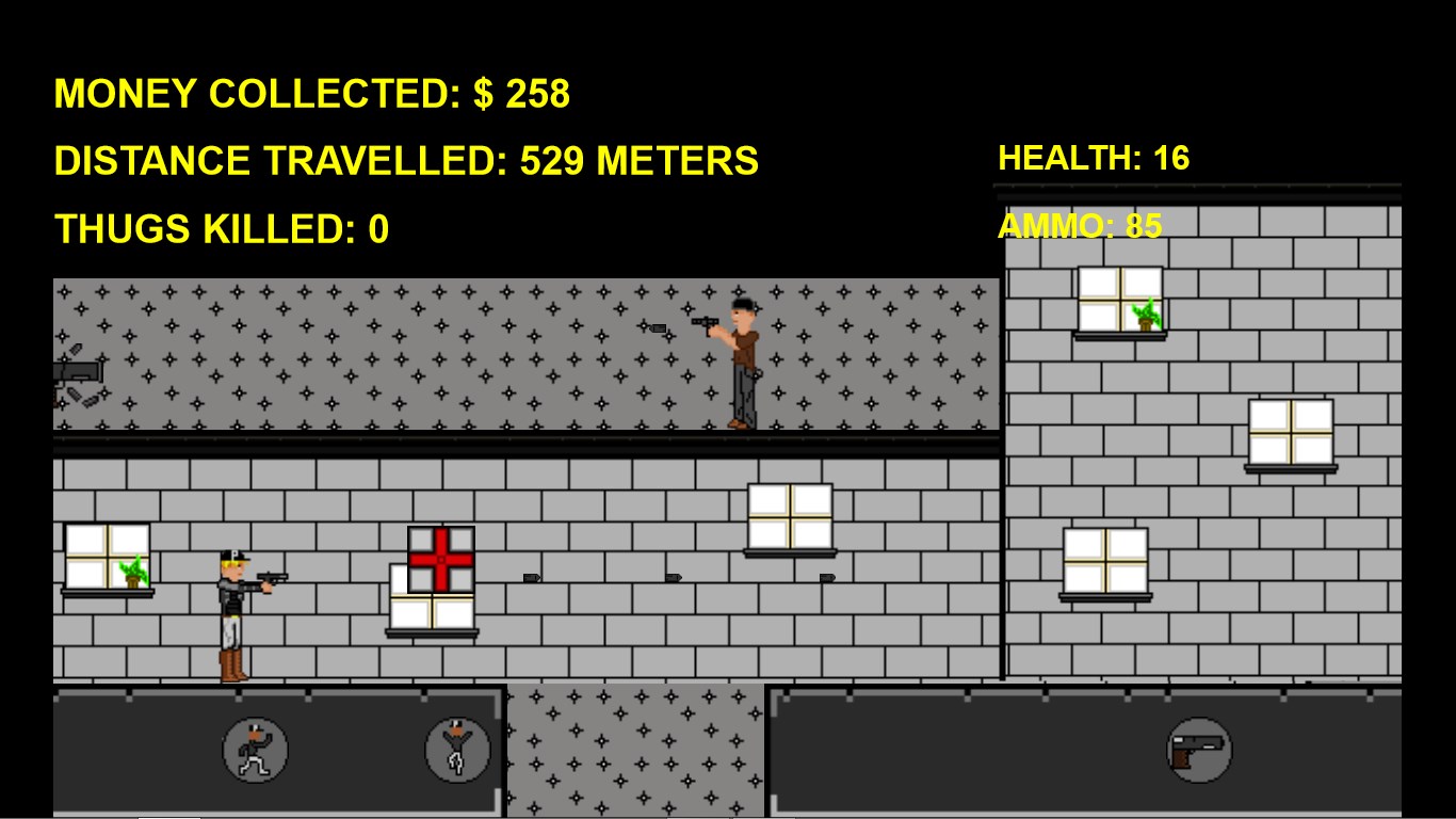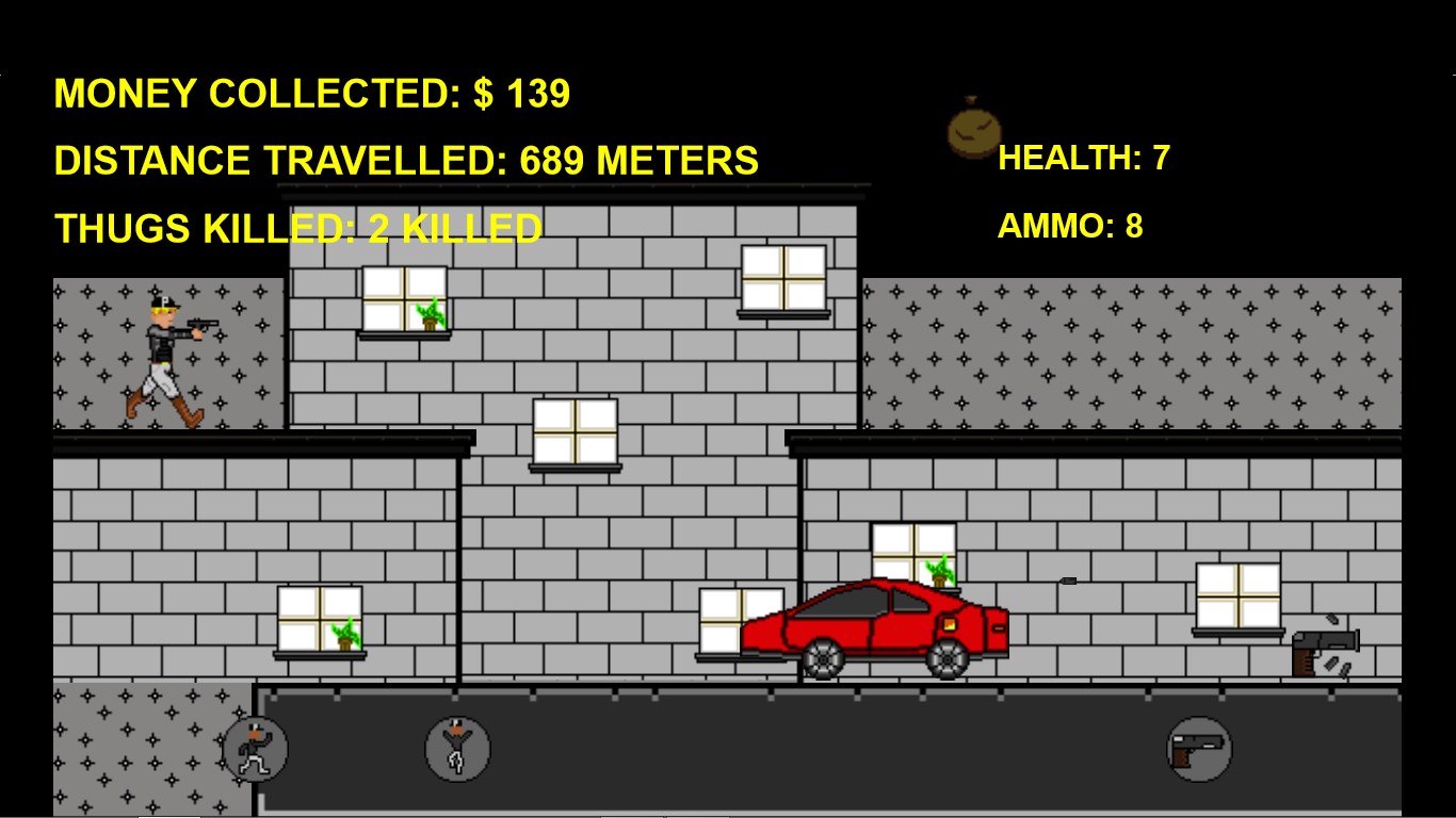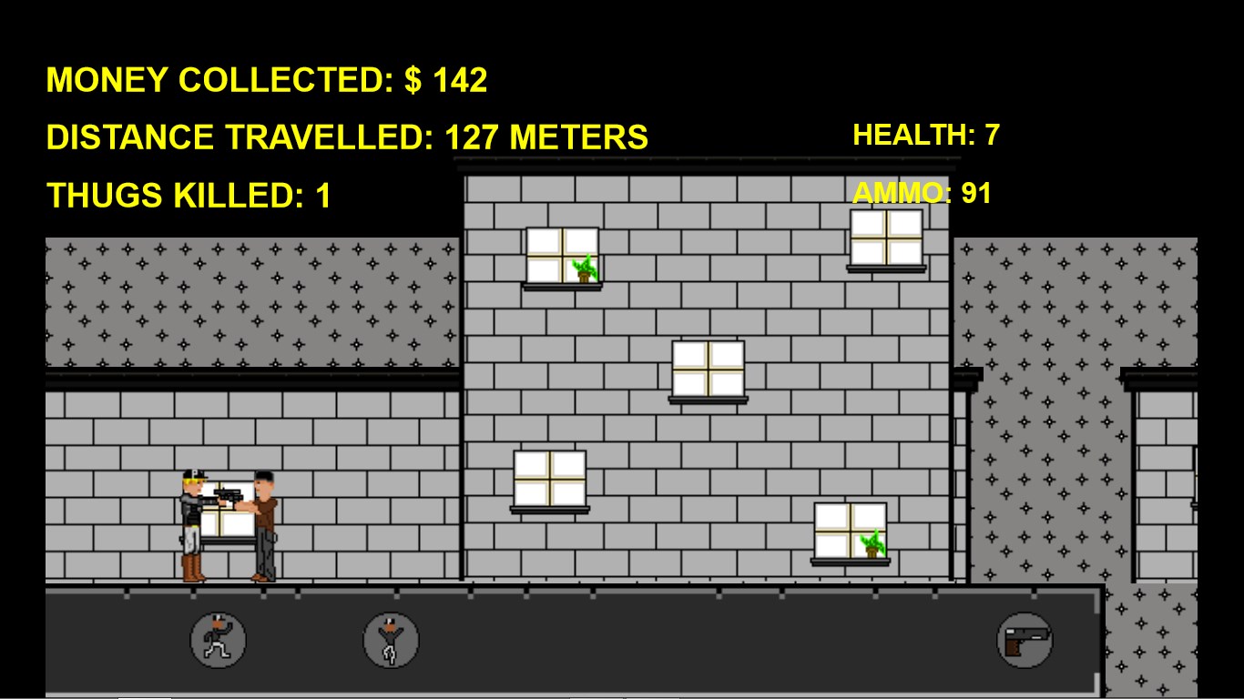 Enjoy shooting thugsVery cool retro aspect to itFeel the freedom of being a police officer jumping from buildingsRack up as many points as you can and then save your high score to show your friendsSuper fun and addicting game that almost anyone can enjoyCombines classic arcade elements with new onesFun to challenge your friendsCollect upgrades that help you get the highest score possible