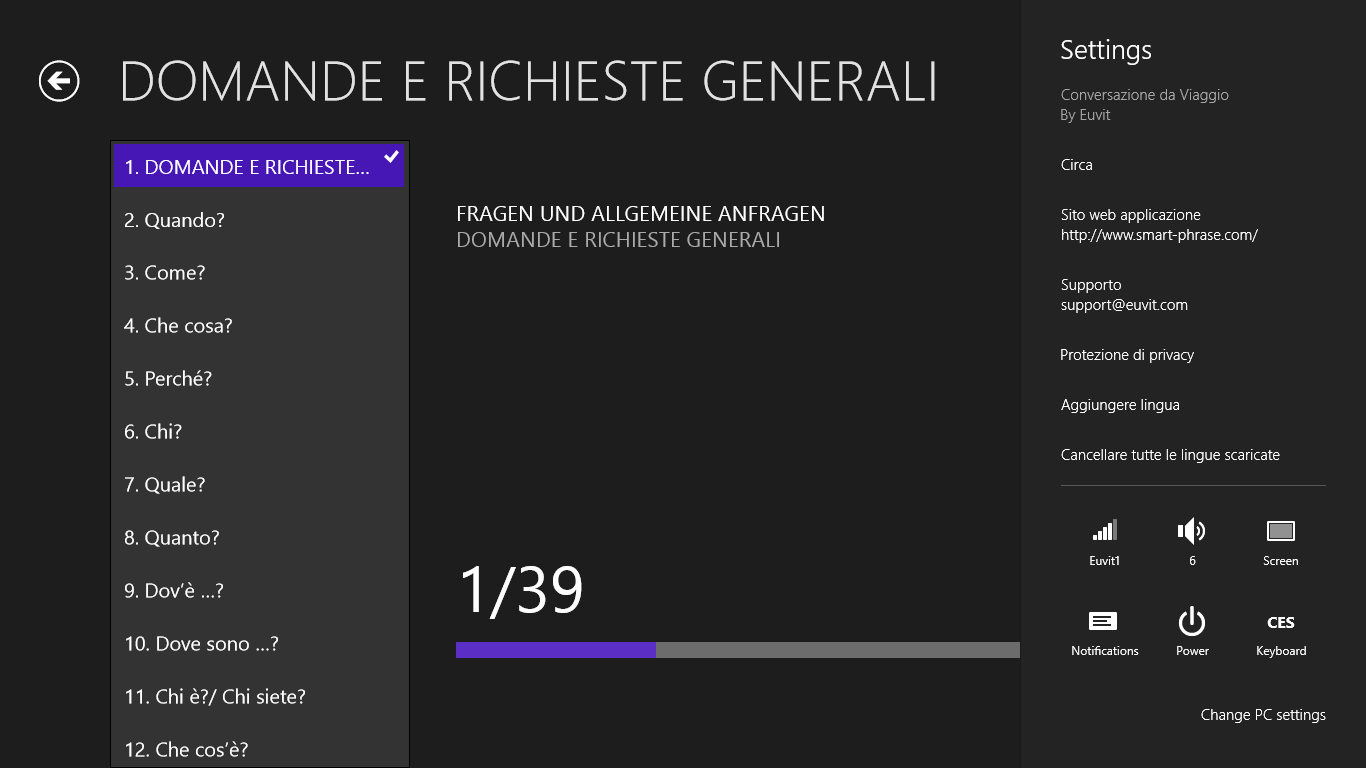 L’applicazione GRATIS è a disposizione nell‘ Windows Store. Dopo il suo download nel vostro impianto il contenuto di intera applicazione sarà a vostra disposizione. Le registrazioni audio sono a pagamento.