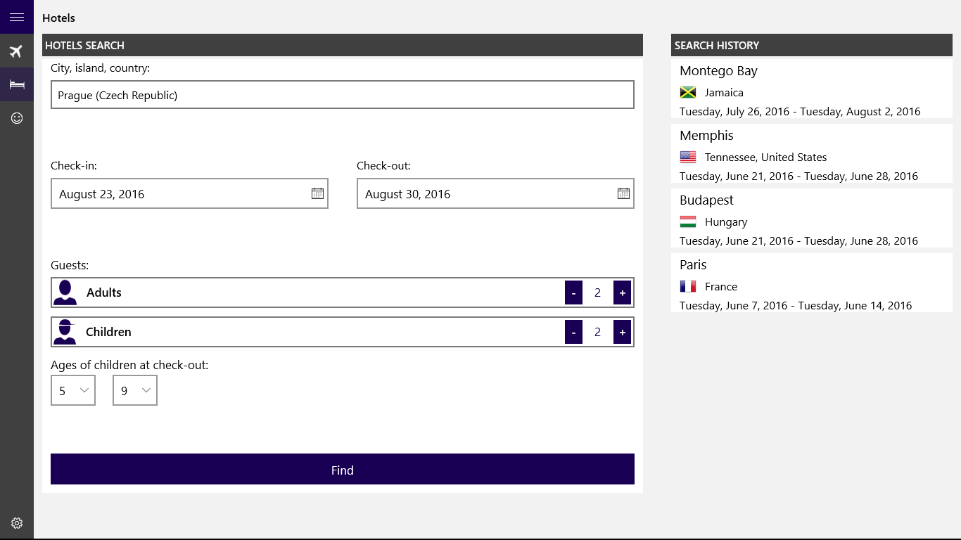 Search the most advantageous and handy flights and hotelsYou can select and sort tickets and hotels by many criteriaGet total information about flight or hotelSearch historyairtravel is absolutely free