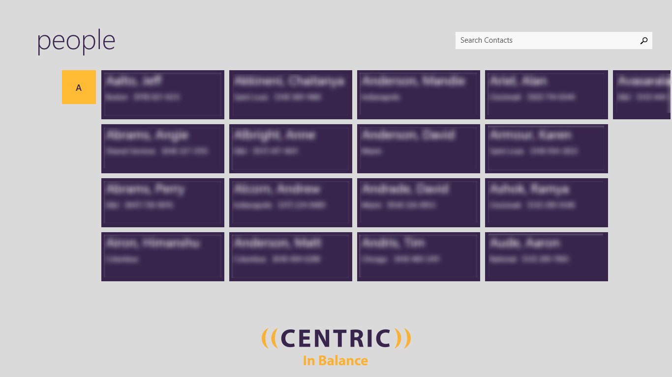 The Centric Contacts app provides easy access to corporate resource information; allowing lookup of a colleague's name, phone numbers, address, etc. The entire resource directory including sub-contracts instantly accessible on your computer.