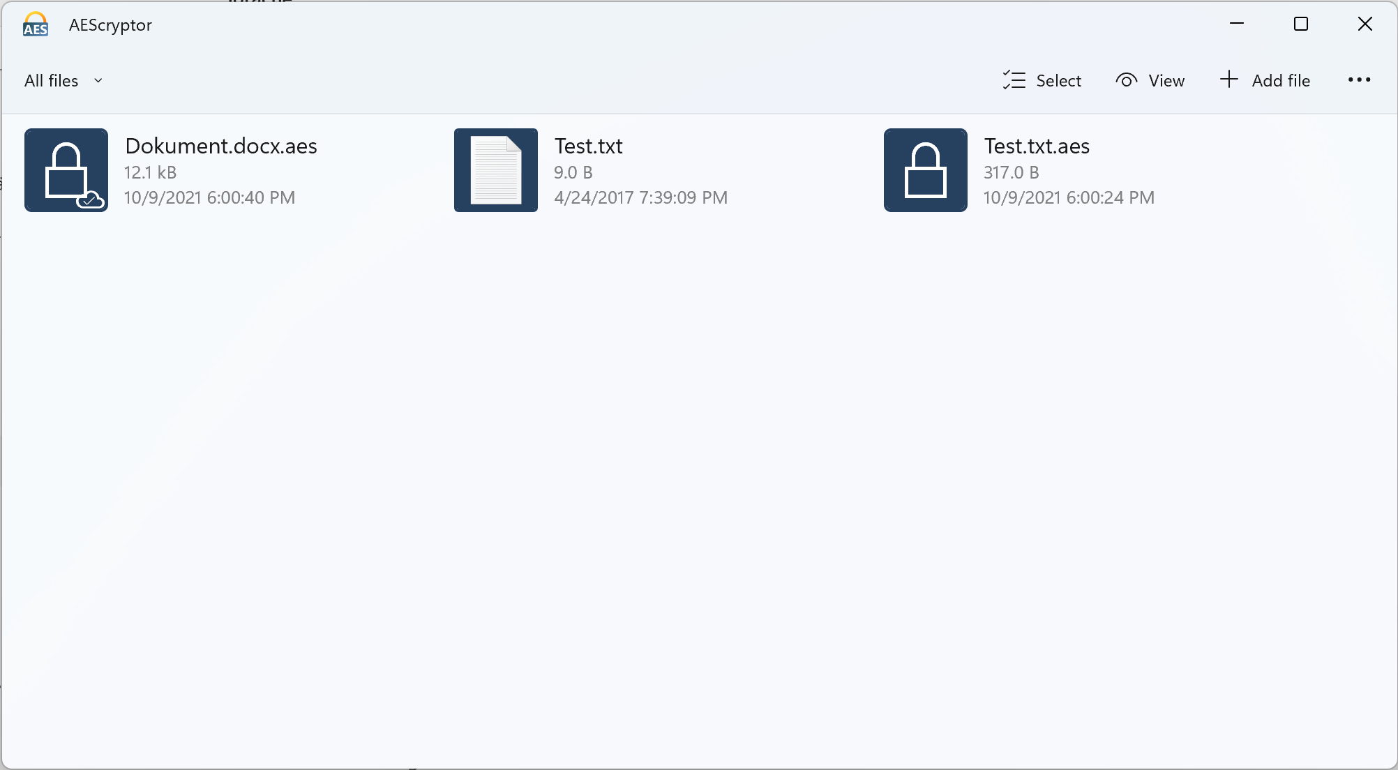 AEScryptor is a simple tool to decrypt and encrypt files created with aescrypt (see aescrypt.com).