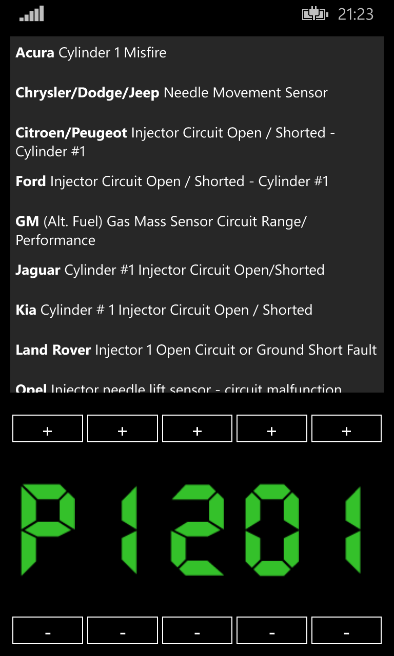 This app is the most complete offline OBD2 (EOBD) diagnostic trouble code definitions database. It contains more than 18500 error descriptions. It is the most full database in market. You can try this app for free in trial version with P0XXX codes only.