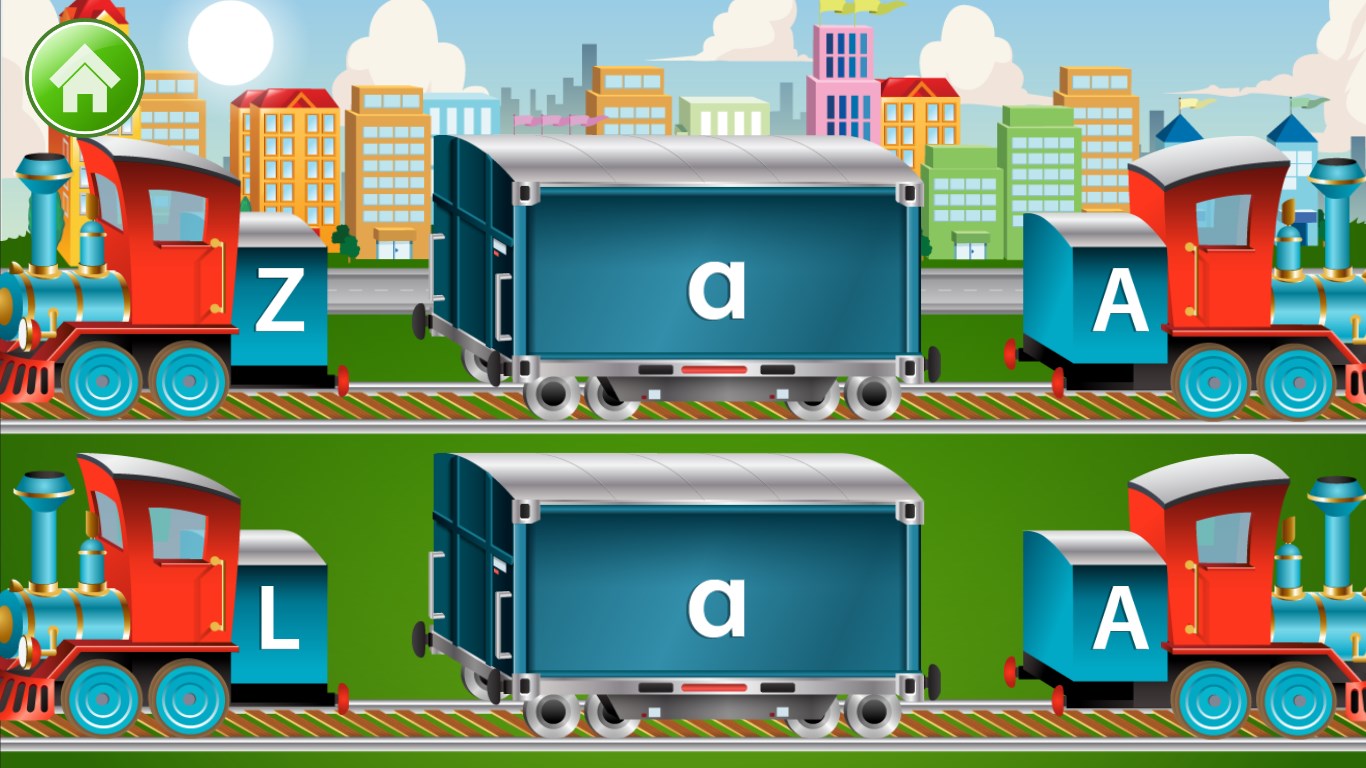 With Kids ABC Trains Game, your preschool-aged kids will learn each letter's name and sound, trace letter shapes, identify letters in context, and match lower to upper case letters.