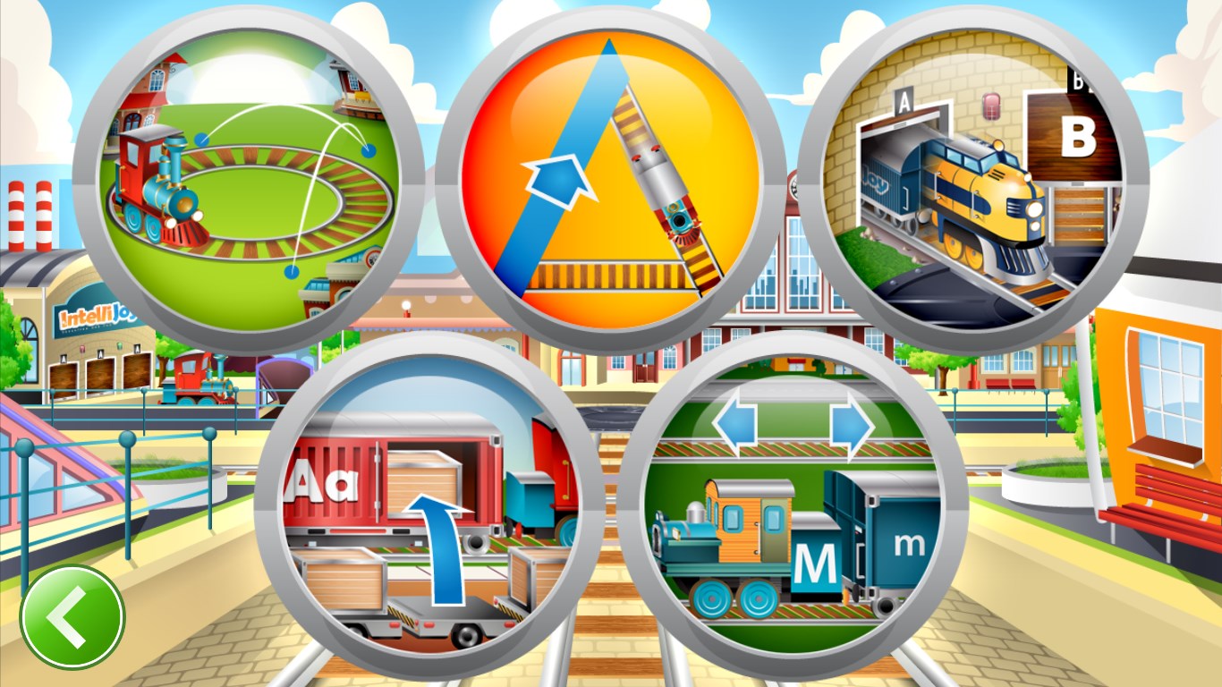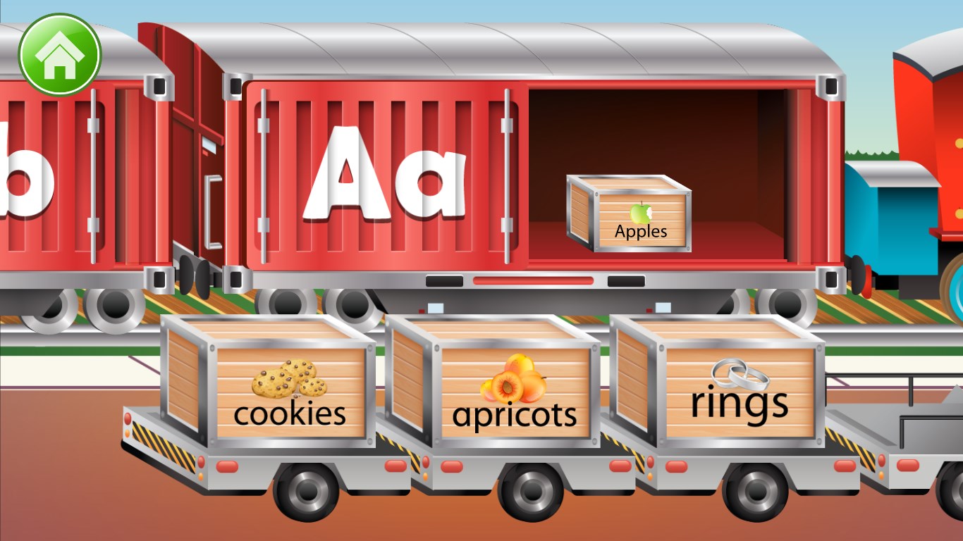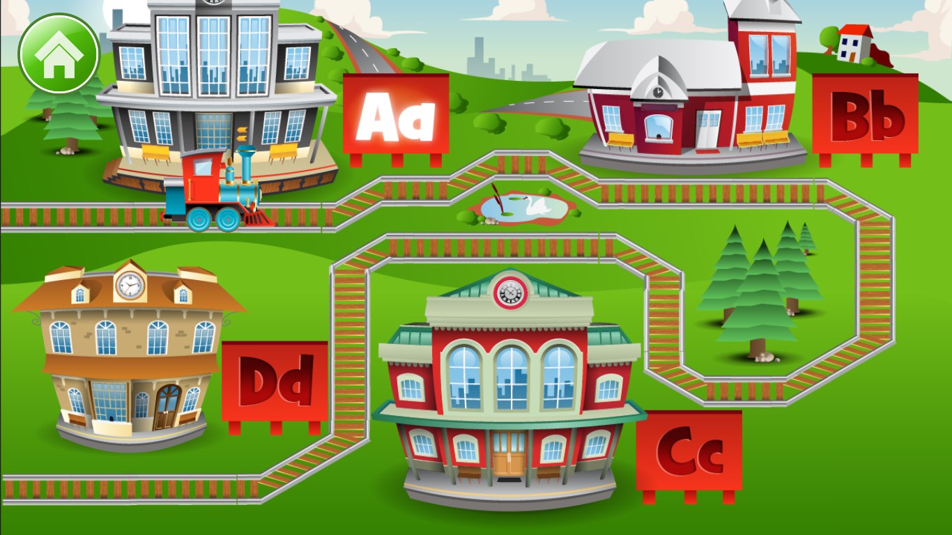 Build the Railroad. This activity is a fun way for children to learn the name and the appearance of each letter in the alphabet.Drive the Train. Kids get to practice making their very own letters, both upper and lower cases, by carefully tracing the letter on a railroad track with their choice of train car.Garages with Surprises. Children are now tested to see if they can find the right letter. They need to open the correct garage, as their engine drives inside and pulls out a cargo car with a surprise.Phonics Cargo Train. This activity teaches children to identify correct letter sounds within the context of words. The child\'s task is to load the correct cargo boxes into the train.Engine Search. Children get to think fast on their feet as they match upper and lower case letters before the trains have time to move away.