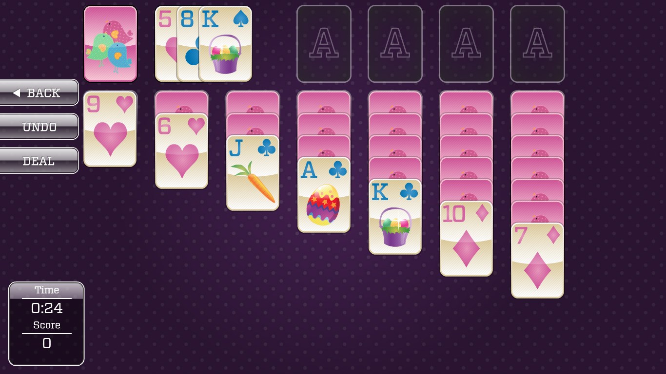 Undo ButtonOfficial Solitaire Scoring and StatisticsDouble Click (or Tap)4 Fun and Challenging Games14 Unlockable Seasonal ThemesSimple Interface (great for kids, too!)Bright, Easy-To-Read Cards