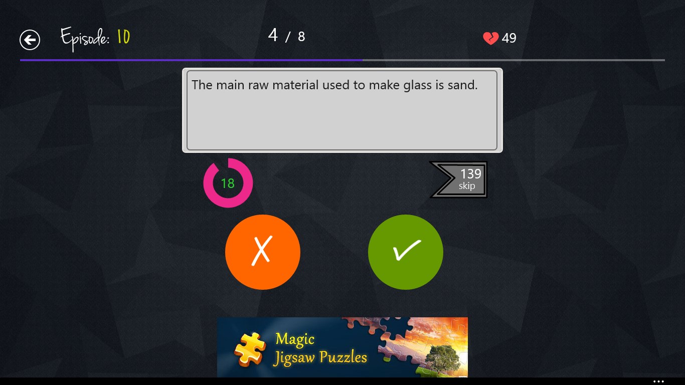 Each episode contains set of questions, to proceed further you need to answer minimum number of questions correctly, you can skip questions if it is hard :).