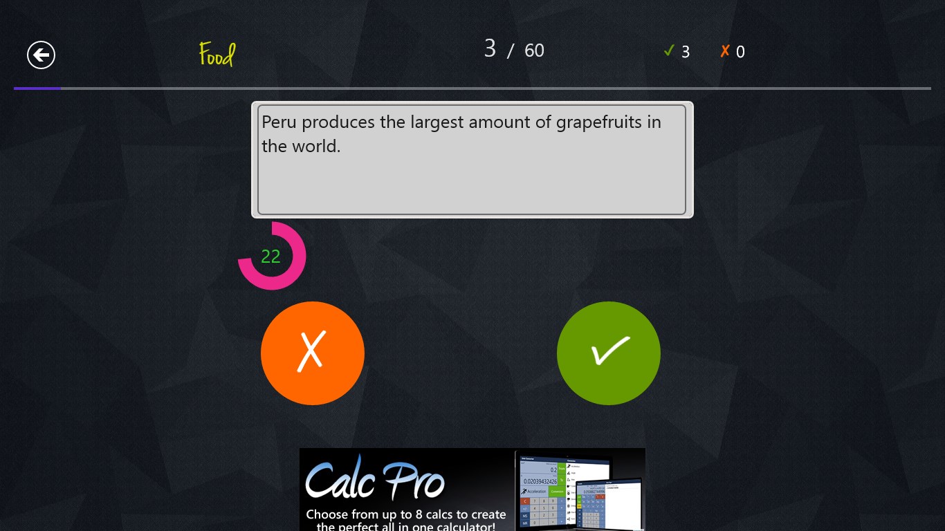 Decide whether the statements are true or false. But think fast, it's against the clock! Astounding facts on a whole range of topics. Try out your general knowledge and test your wits! But watch out, tricky false statements are mixed in with true facts.