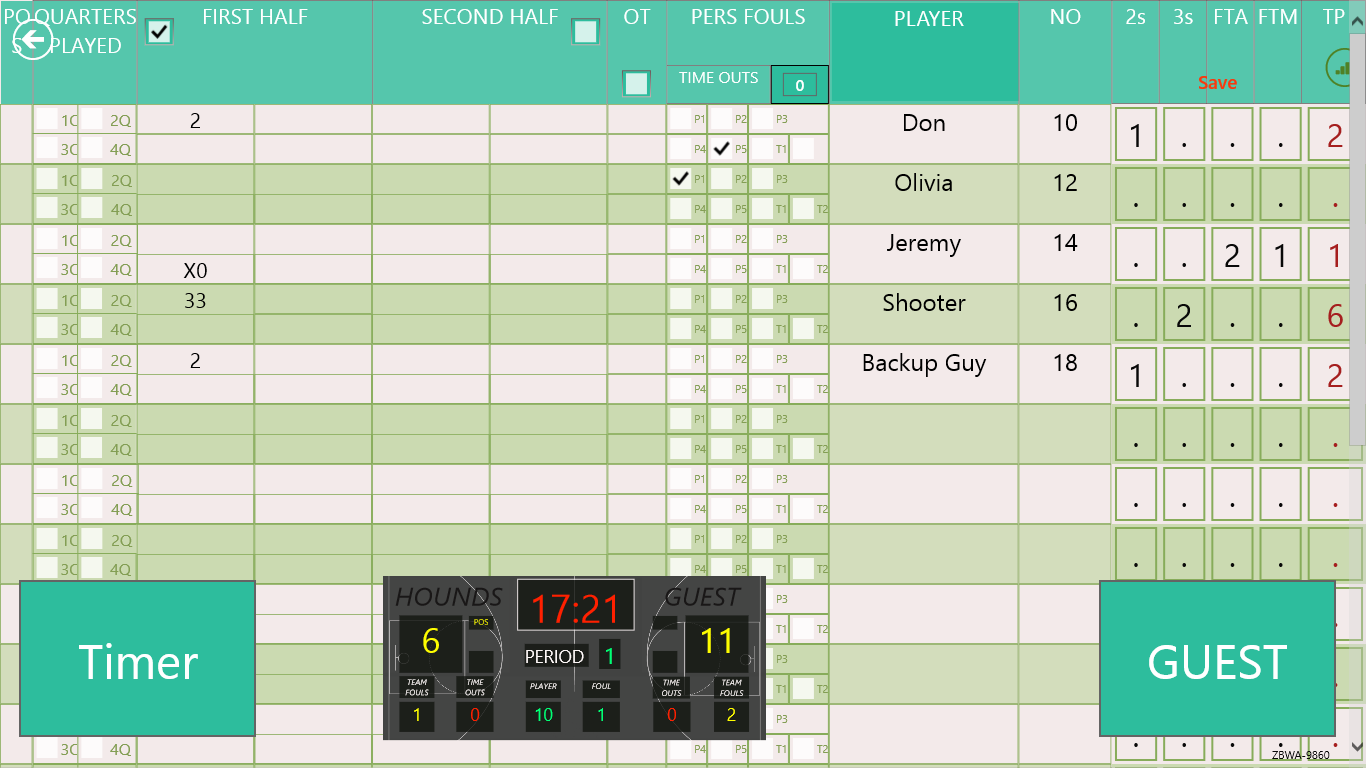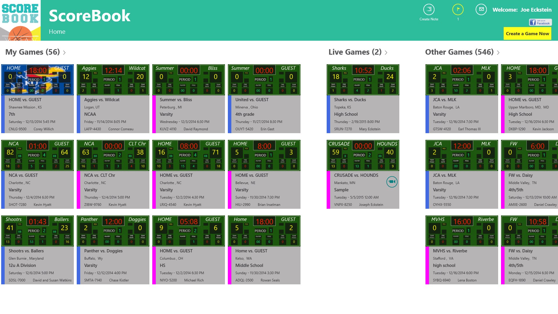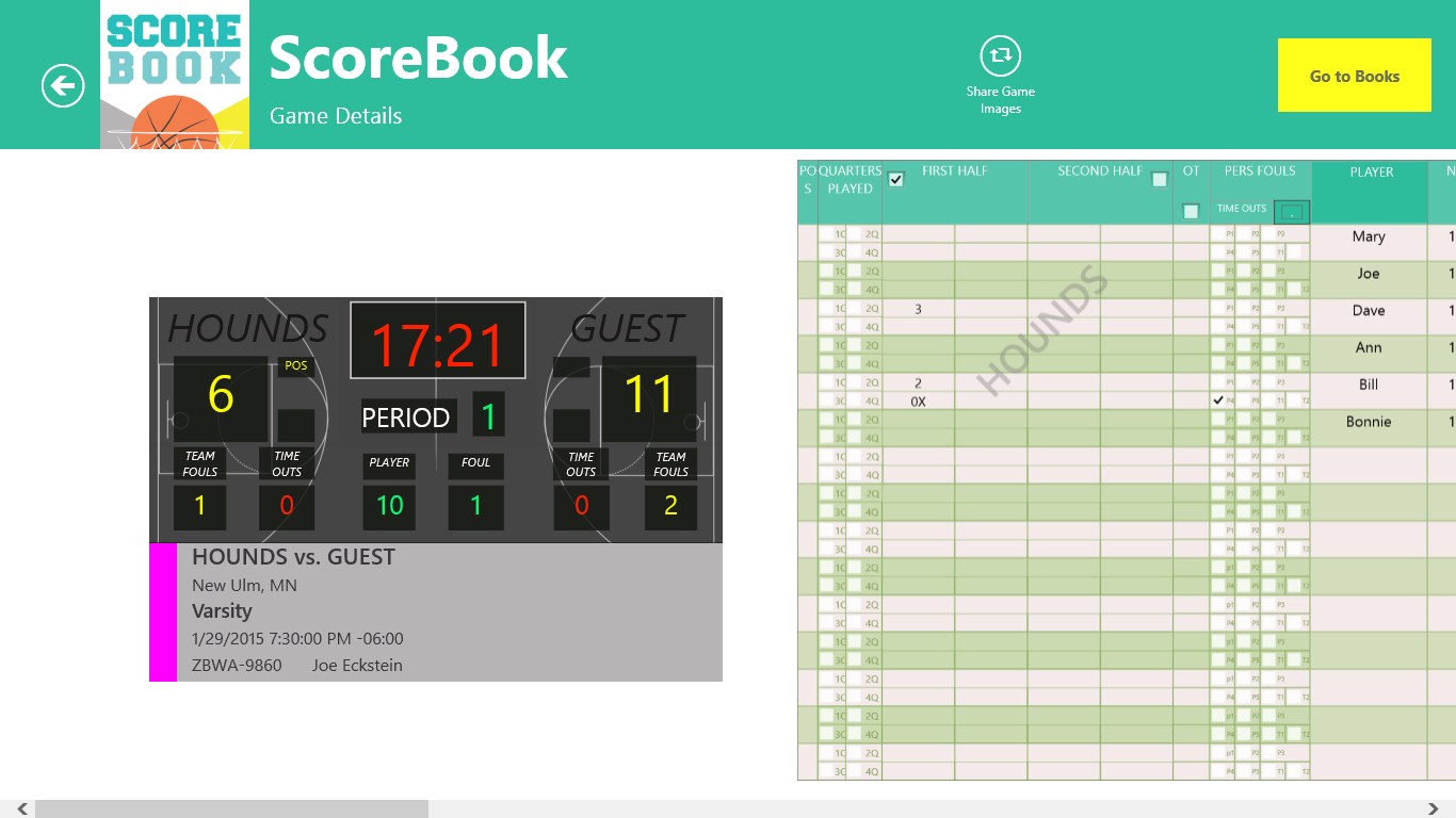 ScoreBook Basketball Score Keeping is a digital and mobile score keeping system for basketball coaches, statisticians and fans. The app offers the ability to keep both home and visitor team score books and has built in scoreboard functionality tied directly to book entries. Team fans; at home or in the stands, can subscribe to games and will enjoy receiving game updates through push notifications of Toast and Live Tiles. Reporters and scouts will find it easy to use Scorebook for both live and historical information reporting and gathering.