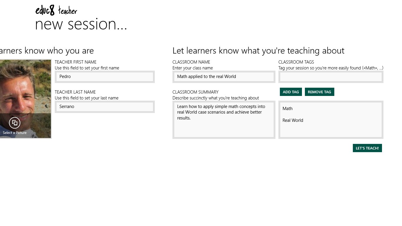 EDUC8 Teacher is a natural touch and pen interface application for the innovative teacher, empowering the teacher while teaching and enabling learners to learn with modern day tools and resources. The time is NOW to change the World.