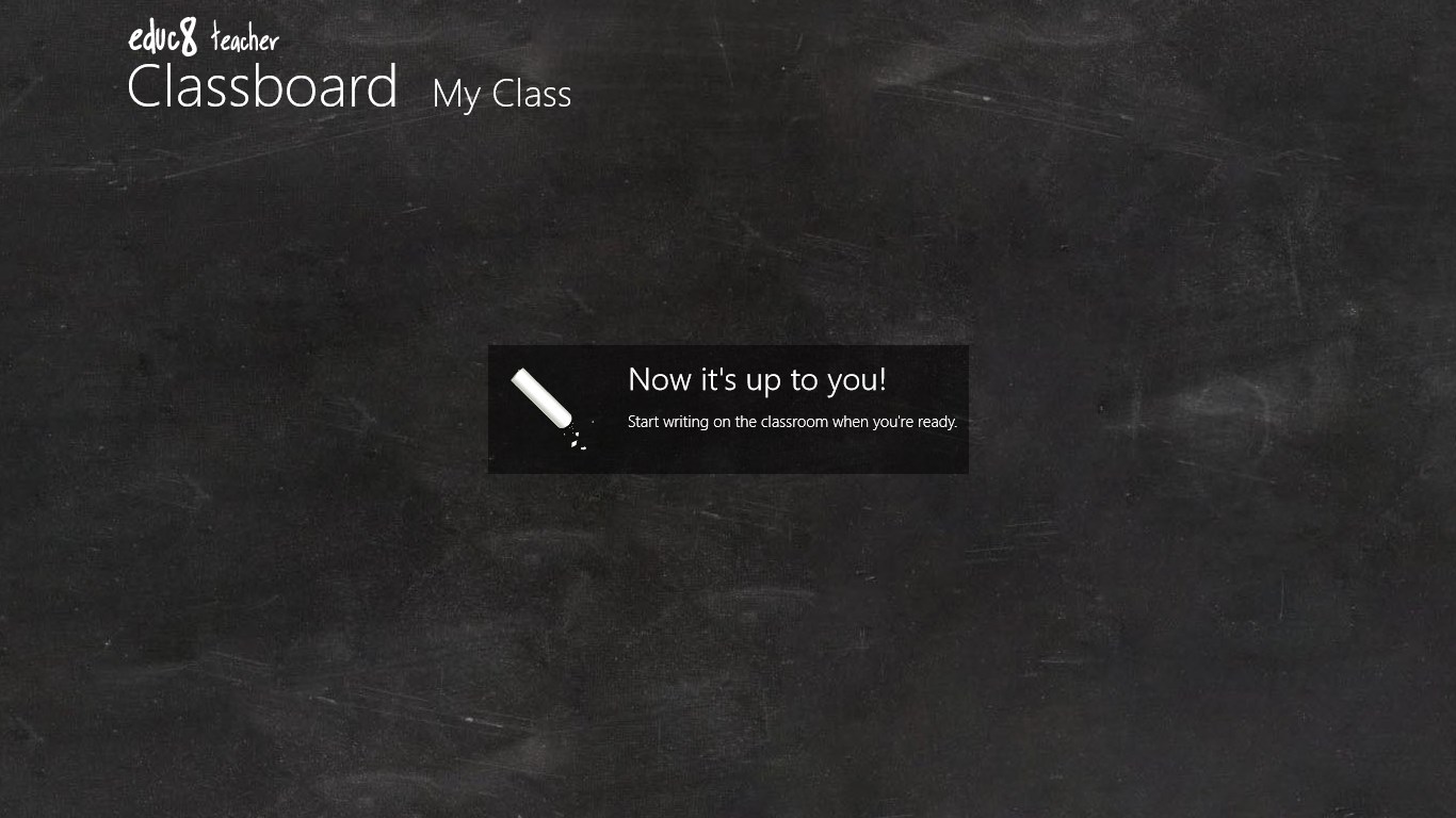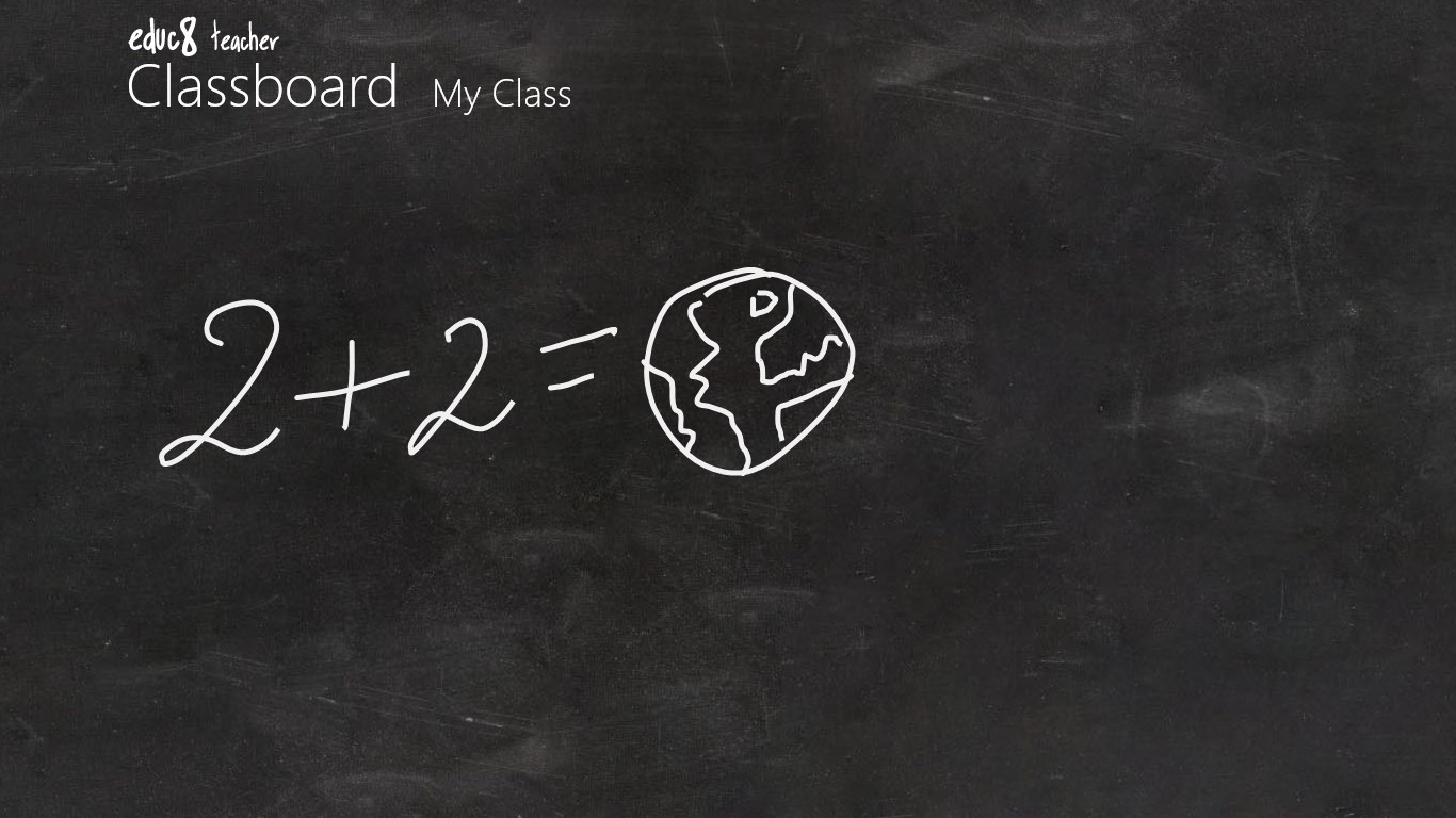 Class settings allow you to set the teacher name and what the class is aboutClassboard provides a blackboard for sharing your knowledgeBroadcast a class session on your local private network so learners can join using EDUC8 Learner