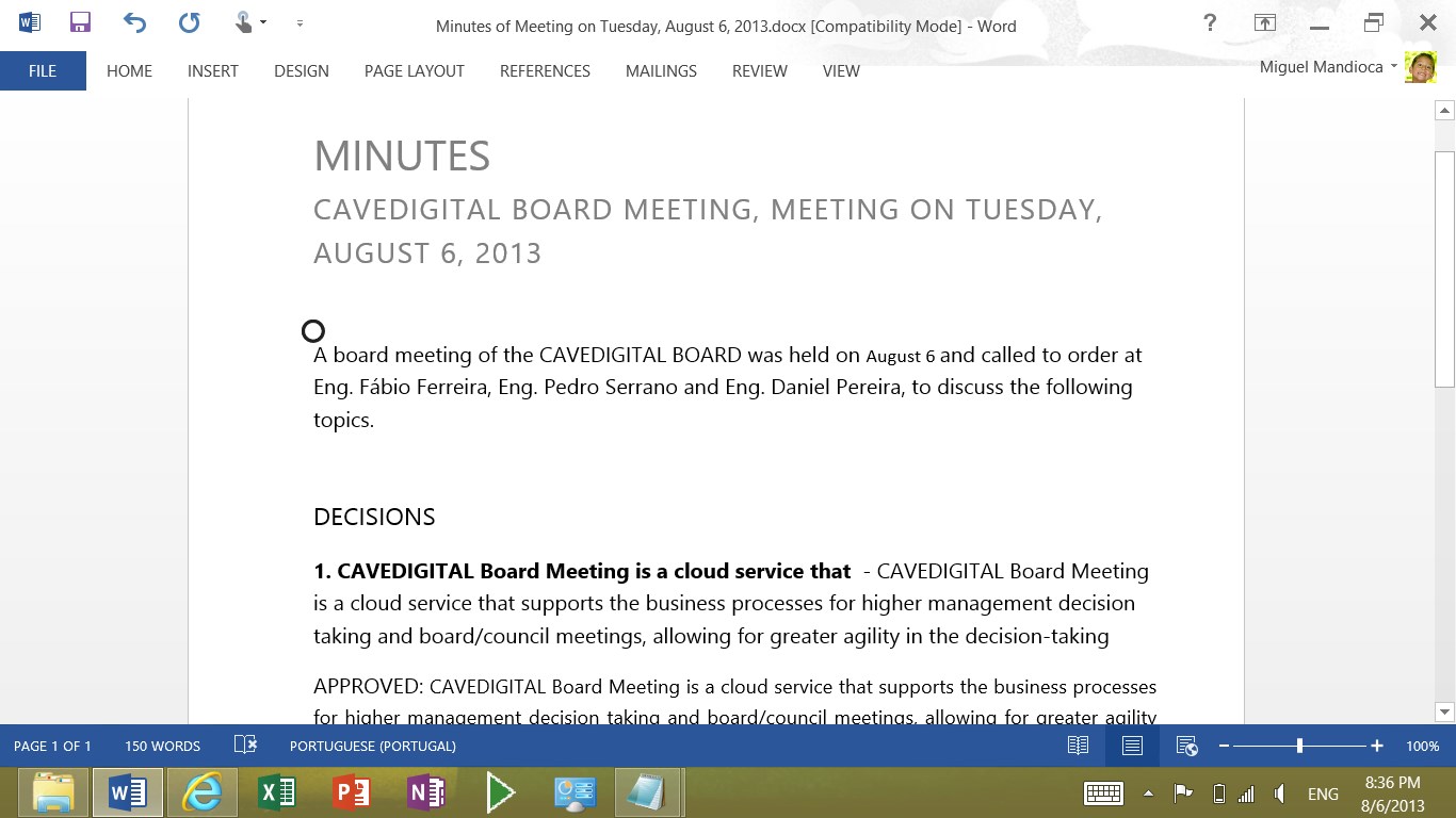 CAVEDIGITAL Board Meeting Cloud is an online service that supports the business processes for higher management decision taking and board/council meetings, allowing for greater agility in the decision-taking process and the subtraction of all paper documentation related with it, eliminating the physical clutter, the logistics and resource consumption associated with it.