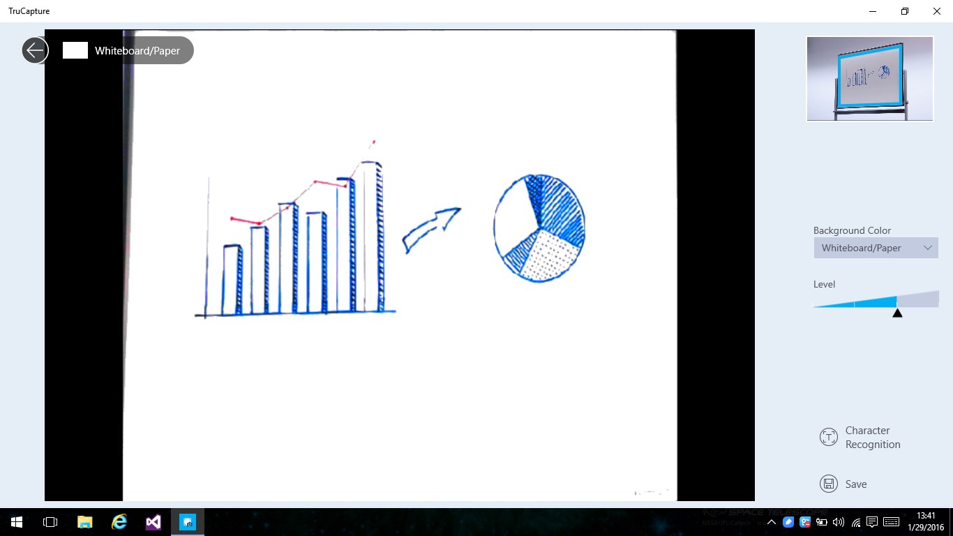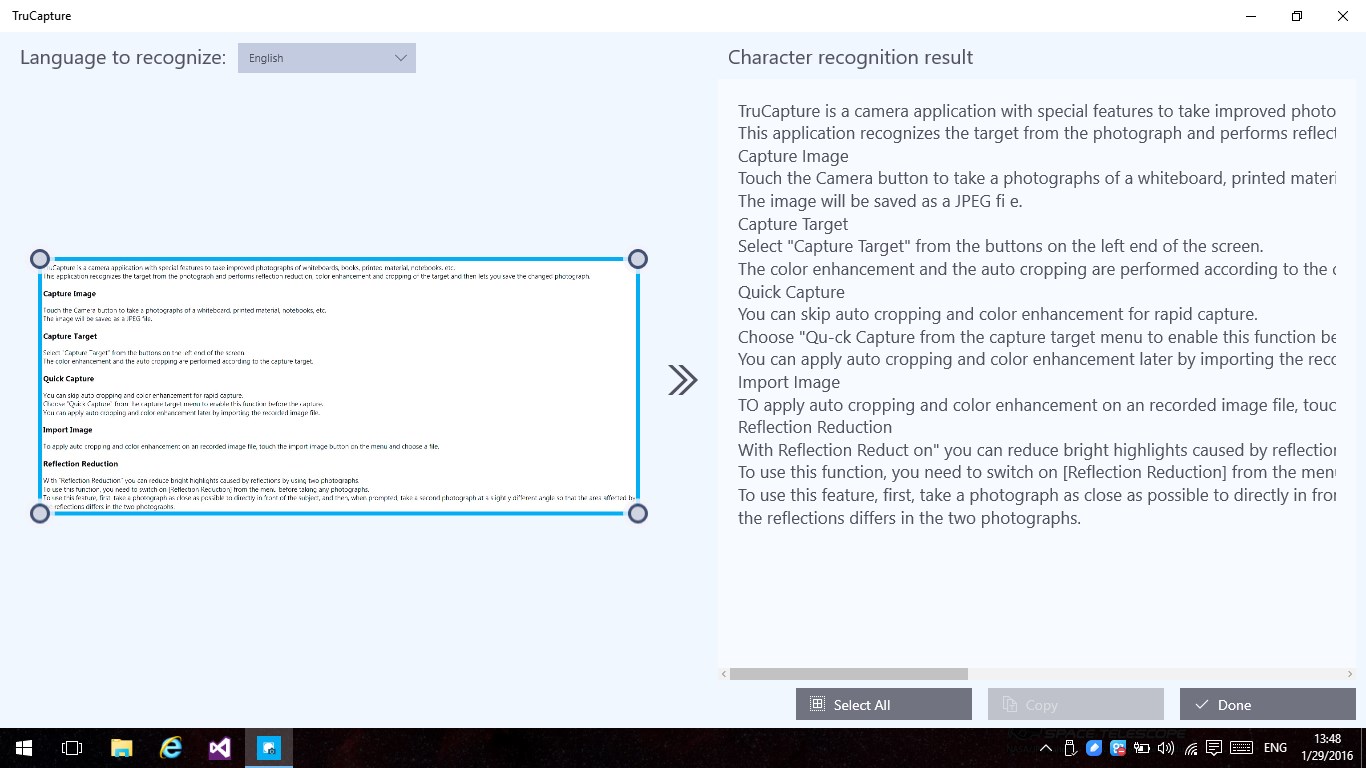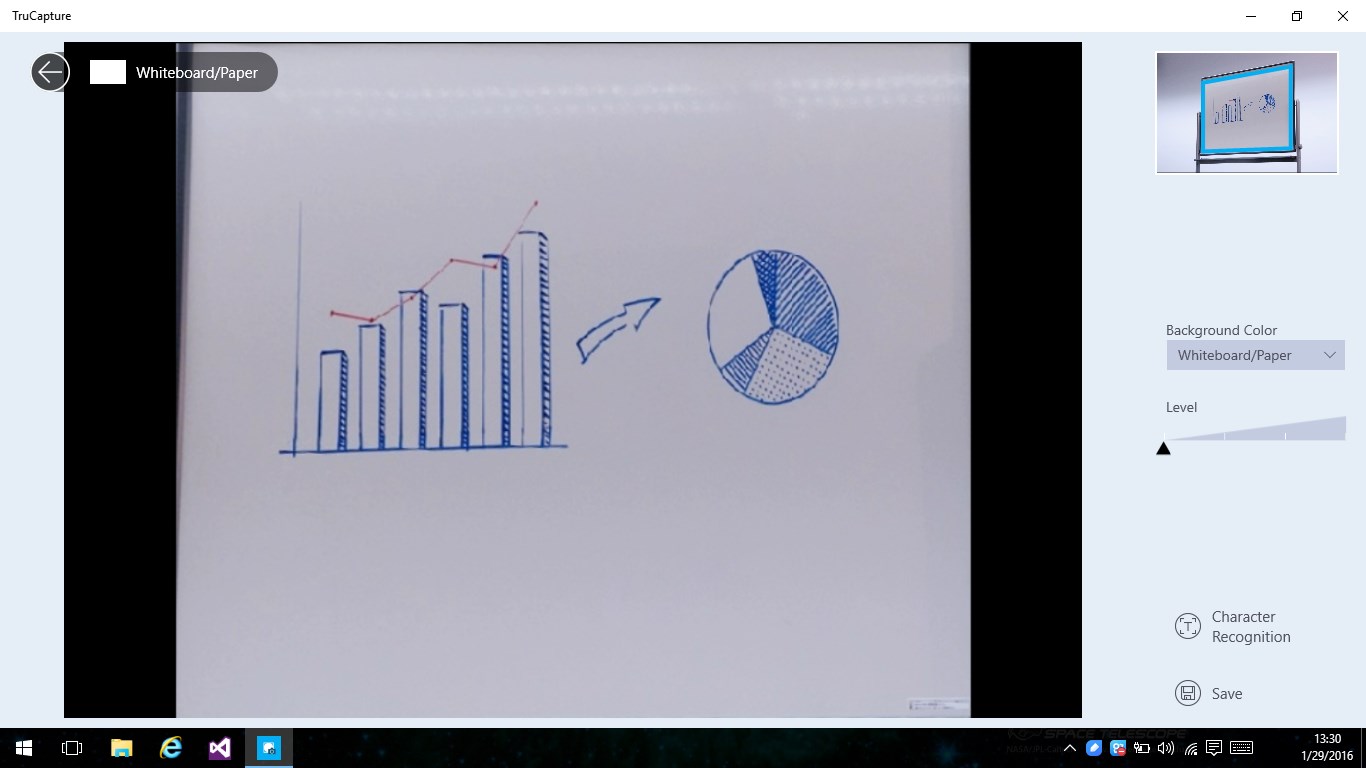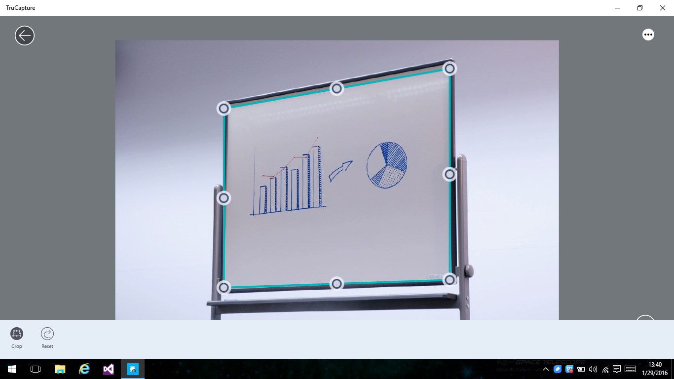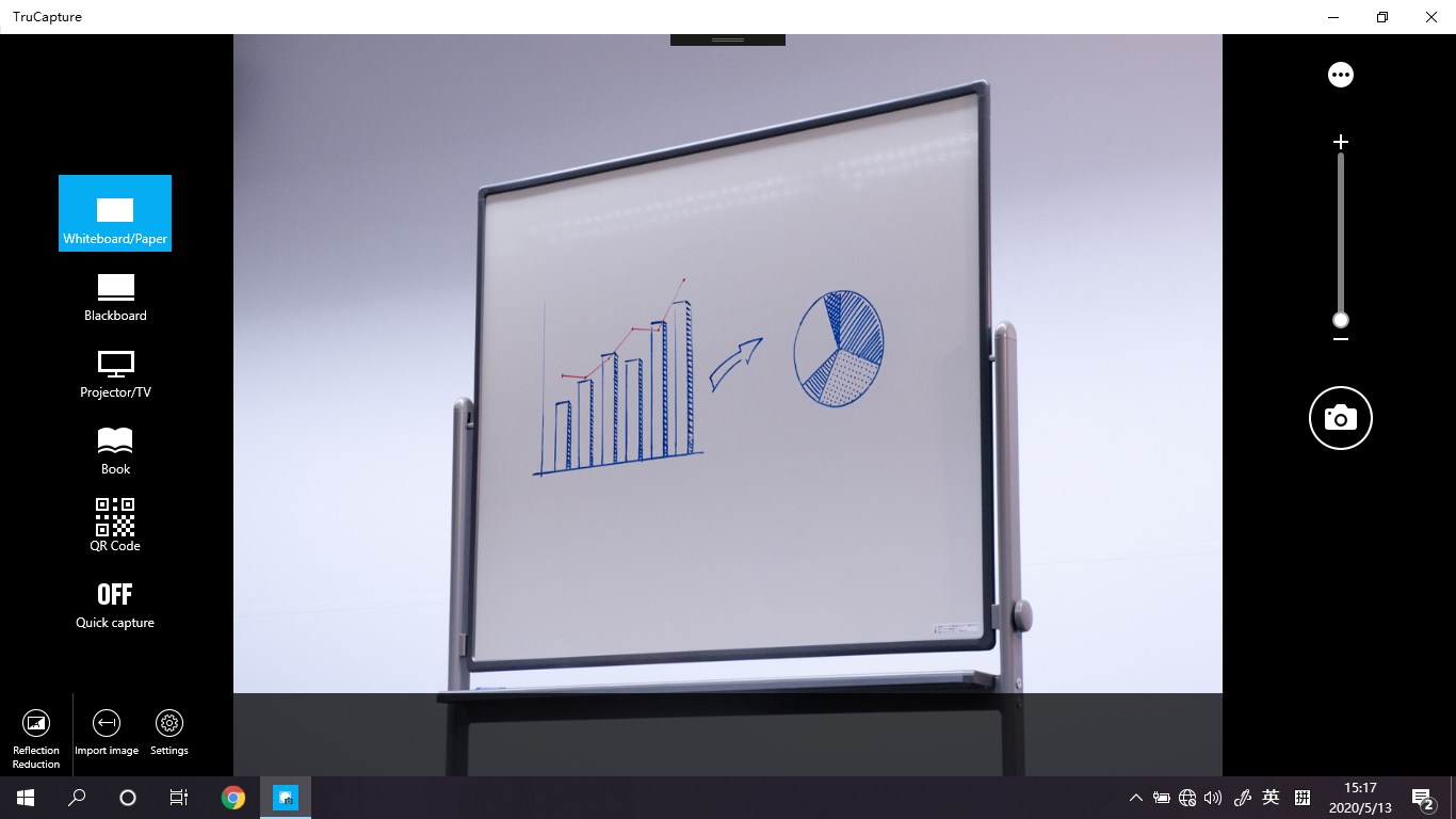 TruCapture is a camera application with special features to improve the readability of whiteboards, books, etc. in photographs taken by TruCapture. Those features include reflection reduction, color enhancement and cropping.