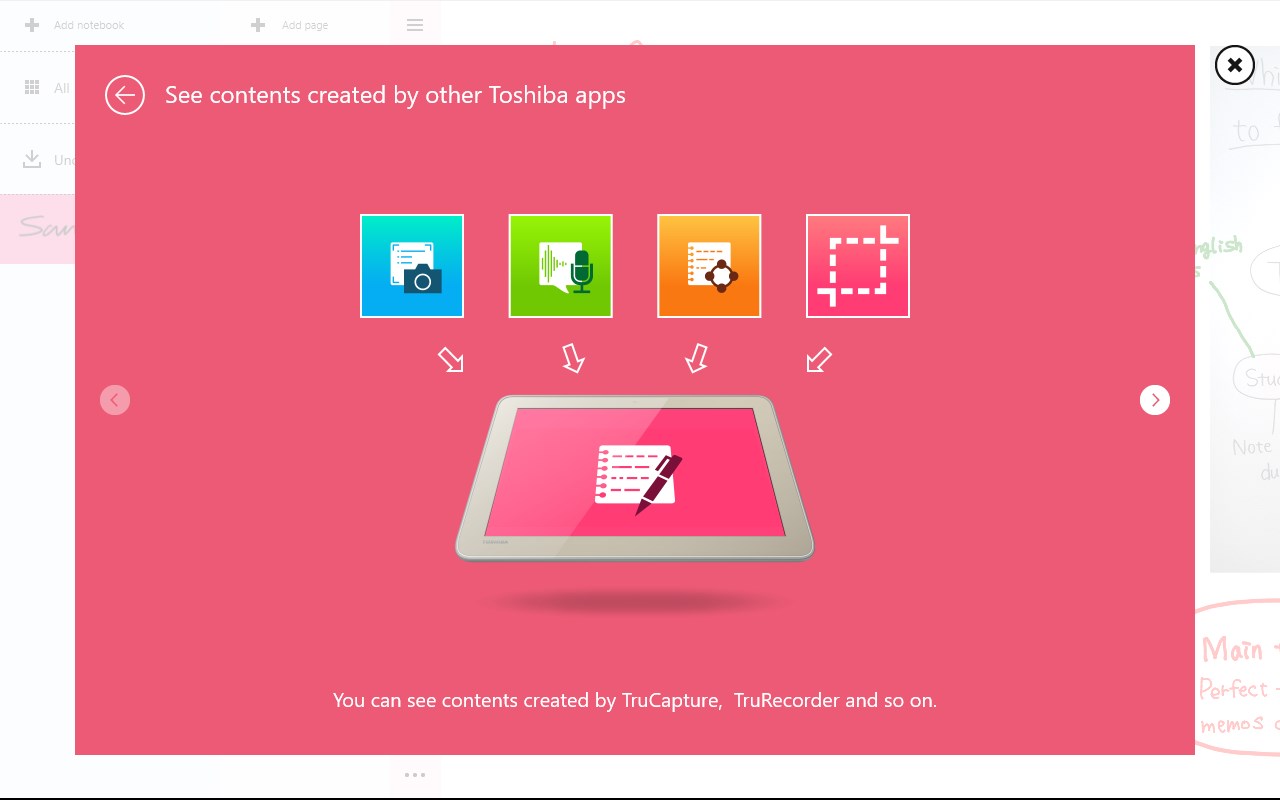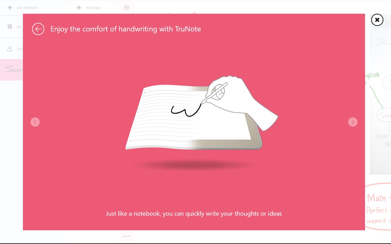 TruNote is an application that allows you to write down your thoughts or ideas through the use of a pen. It can be used like real paper.