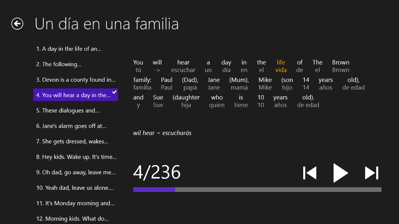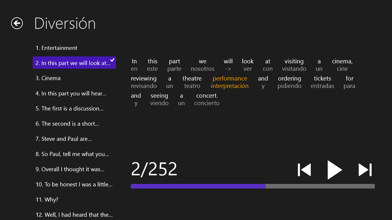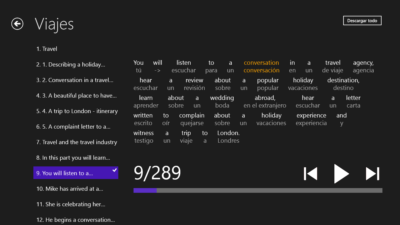 * un total de 18 lecciones, 2728 oraciones, 35814 palabras