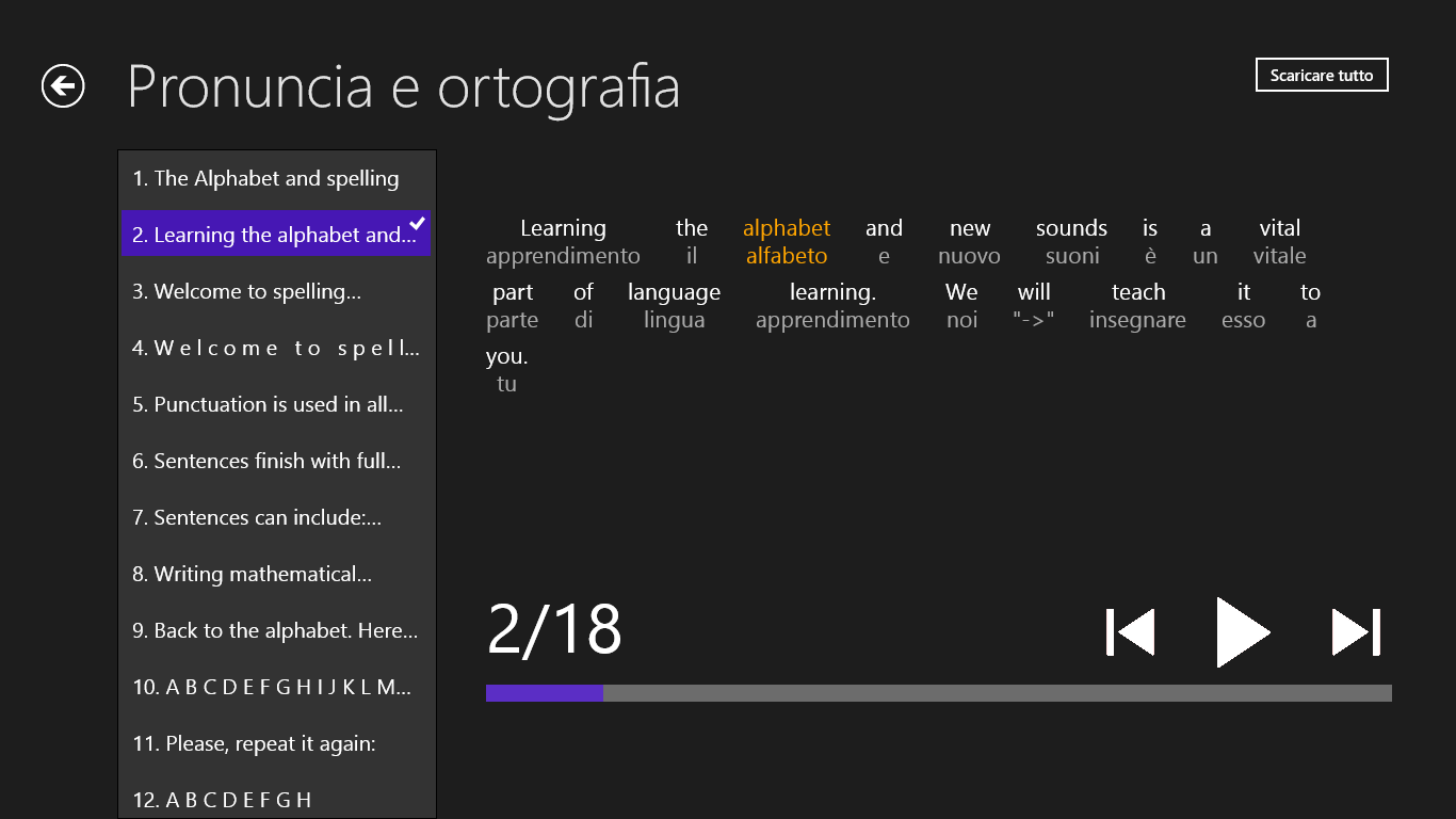 * Pronuncia e ortografia: 7 minuti, 18 frasi, 158 parole uniche