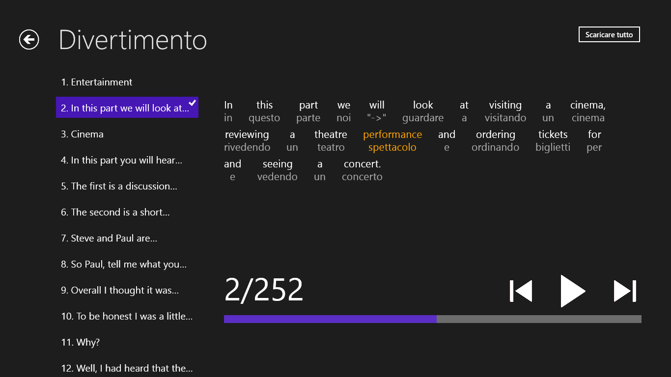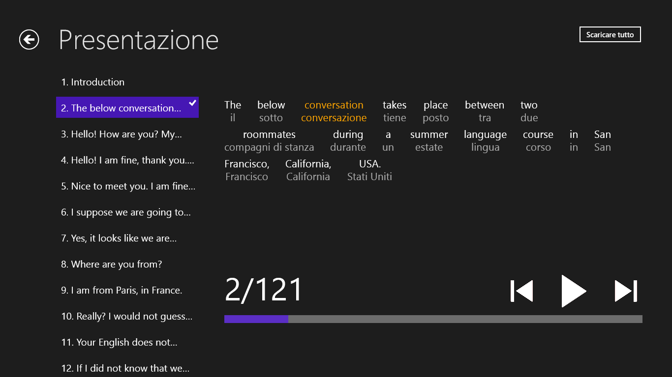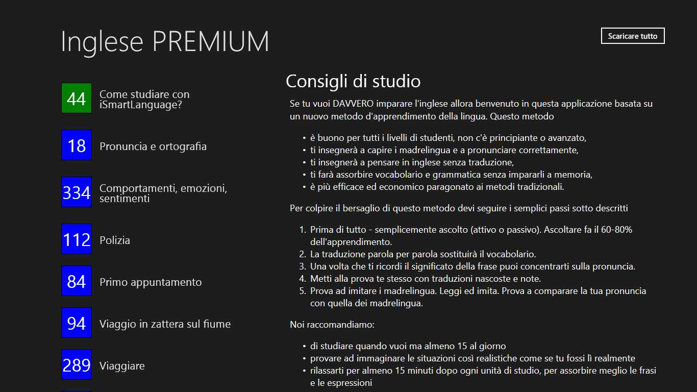 L’applicazione GRATIS è a disposizione nell‘ Windows Store. Dopo il suo download nel vostro impianto il contenuto di intera applicazione sarà a vostra disposizione. Le registrazioni audio sono a pagamento.