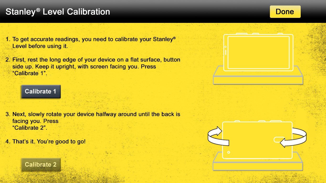 Stanley®’s Level App gives you a portable level for your Windows device. The app asks you to calibrate your device for the first use. Once completed, the digital level is available anytime, anywhere. Just like a real level, the bubble will indicate when you’re straight. For ease of use, numbers indicate how close to center you are - the farther from 0°, the farther from straight you become.
