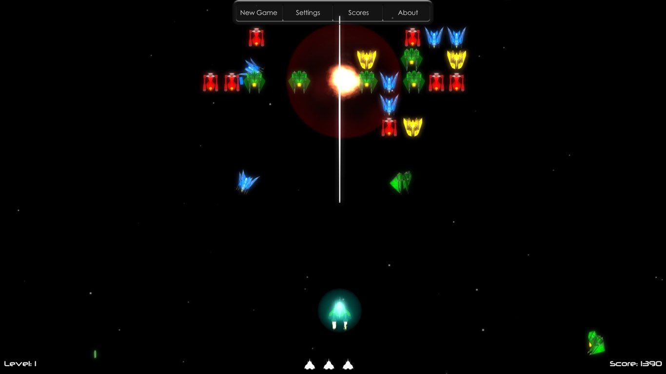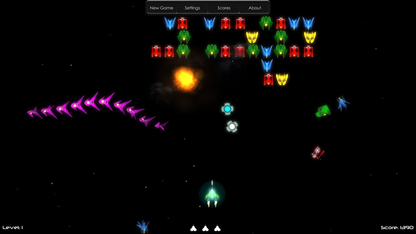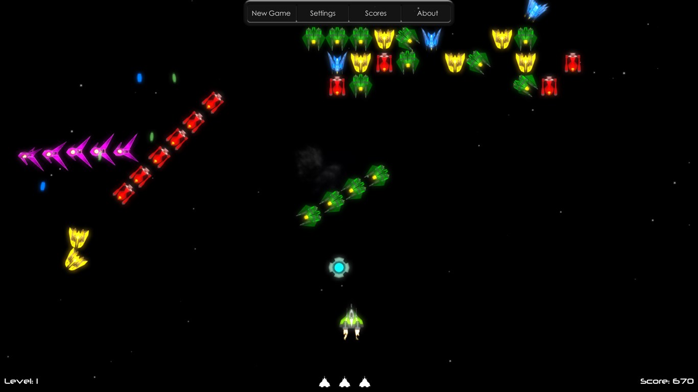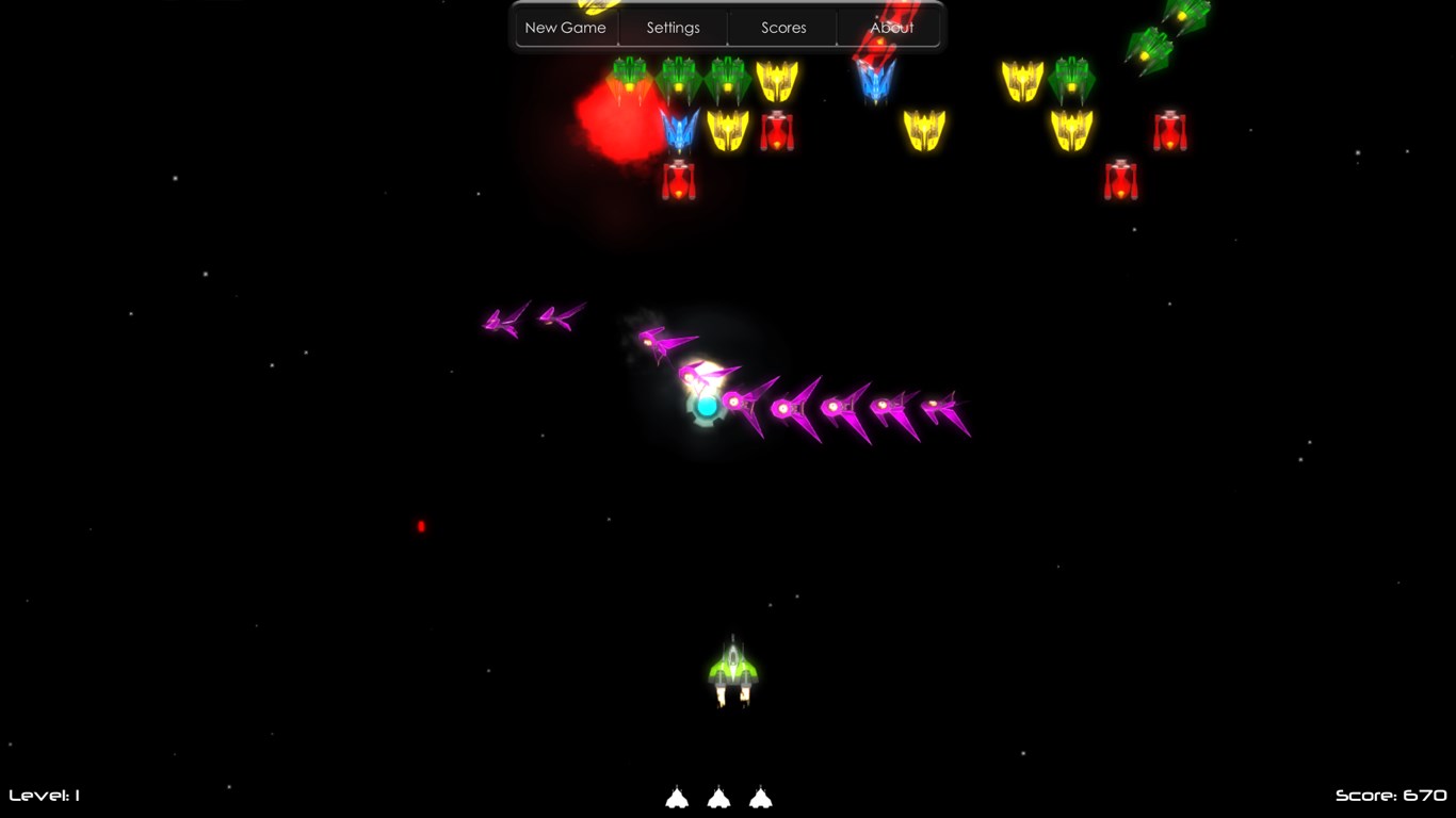 Great graphics, nice effects and cool musicRandomly generated paths and formationsControllable with keyboard, mouse or touch