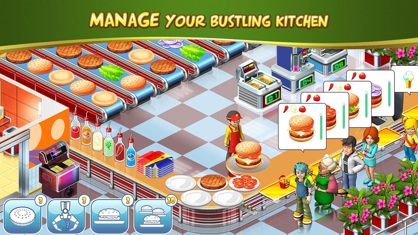 In this unique blend of time management, city building and strategy gameplay, grow your burger business step-by-step. Flip the best burgers, improve your offerings and satisfy your growing clientele. Then expand to seven types of cafes serving different specialties: lasagna, beef, fish, salad, chicken burgers, breakfast and chocolate cake. Make upgrades and maximize profits!