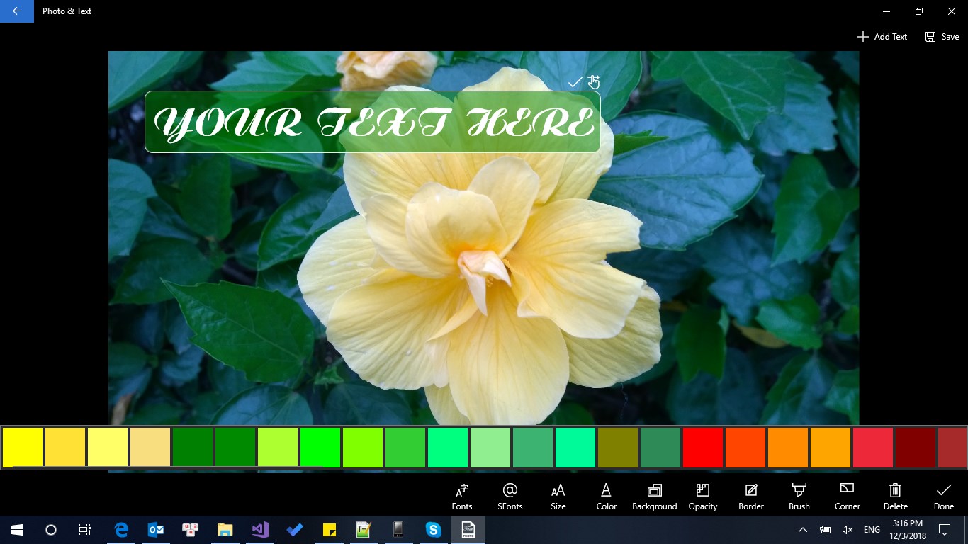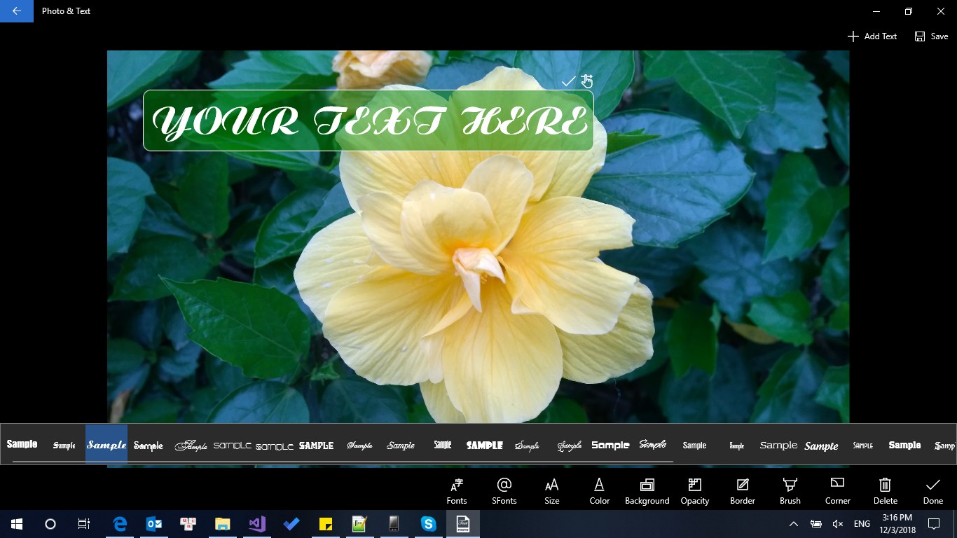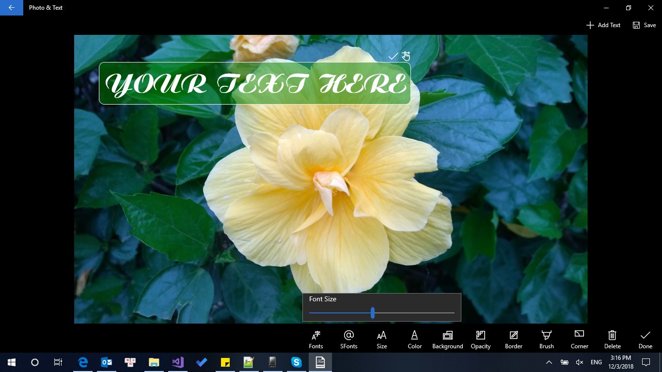 This application allow you add text to photo with a lot of features: