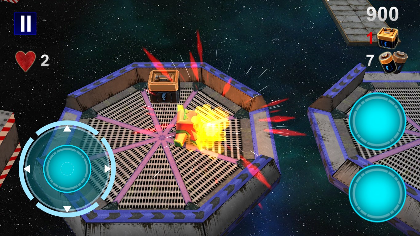 Collected 3 energycells to activate the teleport.Collected all battery and get a star.Collected all enegrycells and get a star.