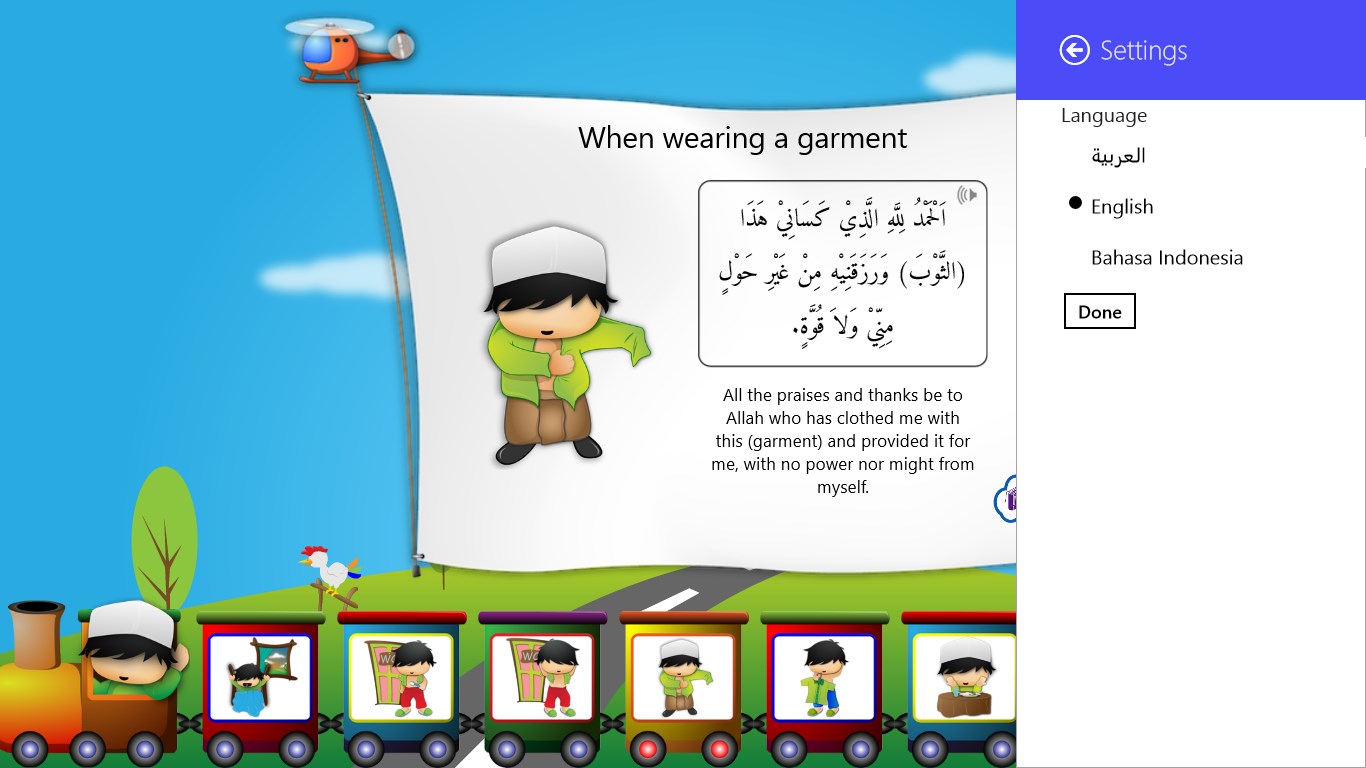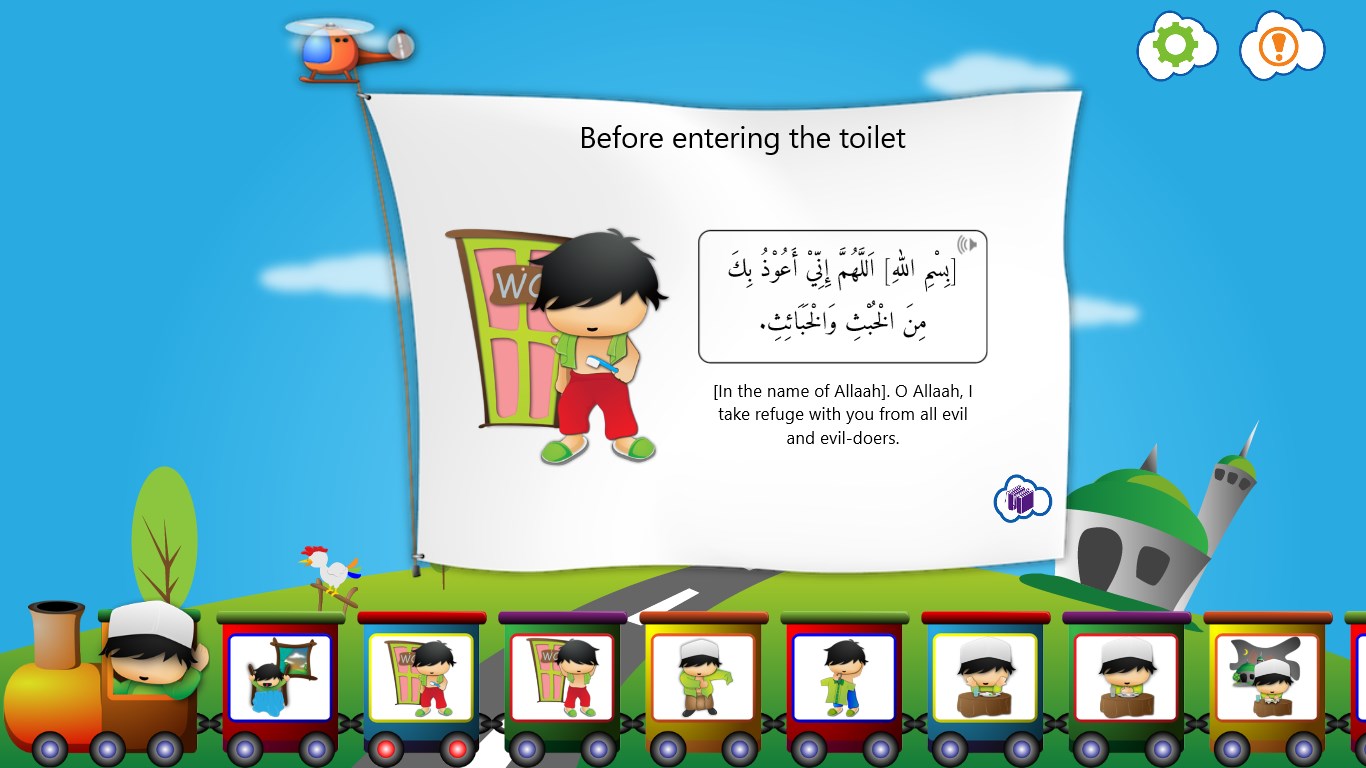 Dua (Supplications and Remembrances) guide for Kids with audio recitation and cute illustrations. Available in Arabic, English and Indonesian. If you like the app, show us some love by leaving us review! It really means a lot to us.