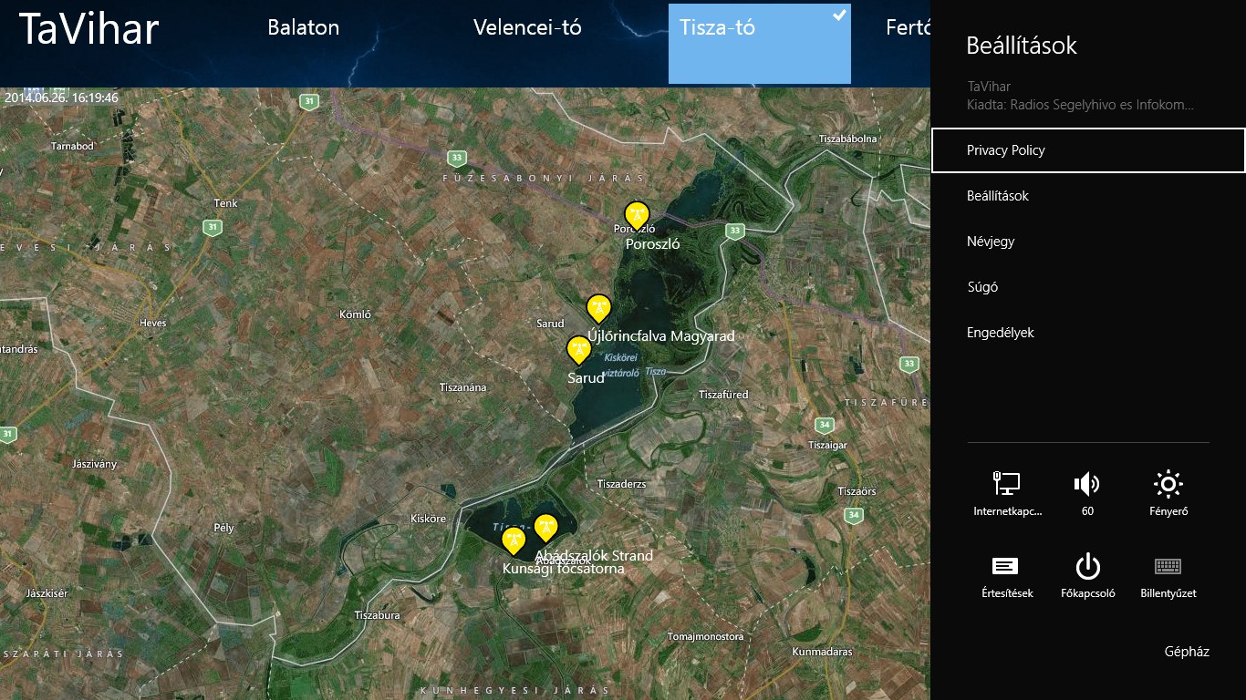 Magyarország hajózható tavainak viharveszélyeiről tájékoztató, honlapunkon is folyamatosan követhető program mobil eszközökön is futtatható változata.