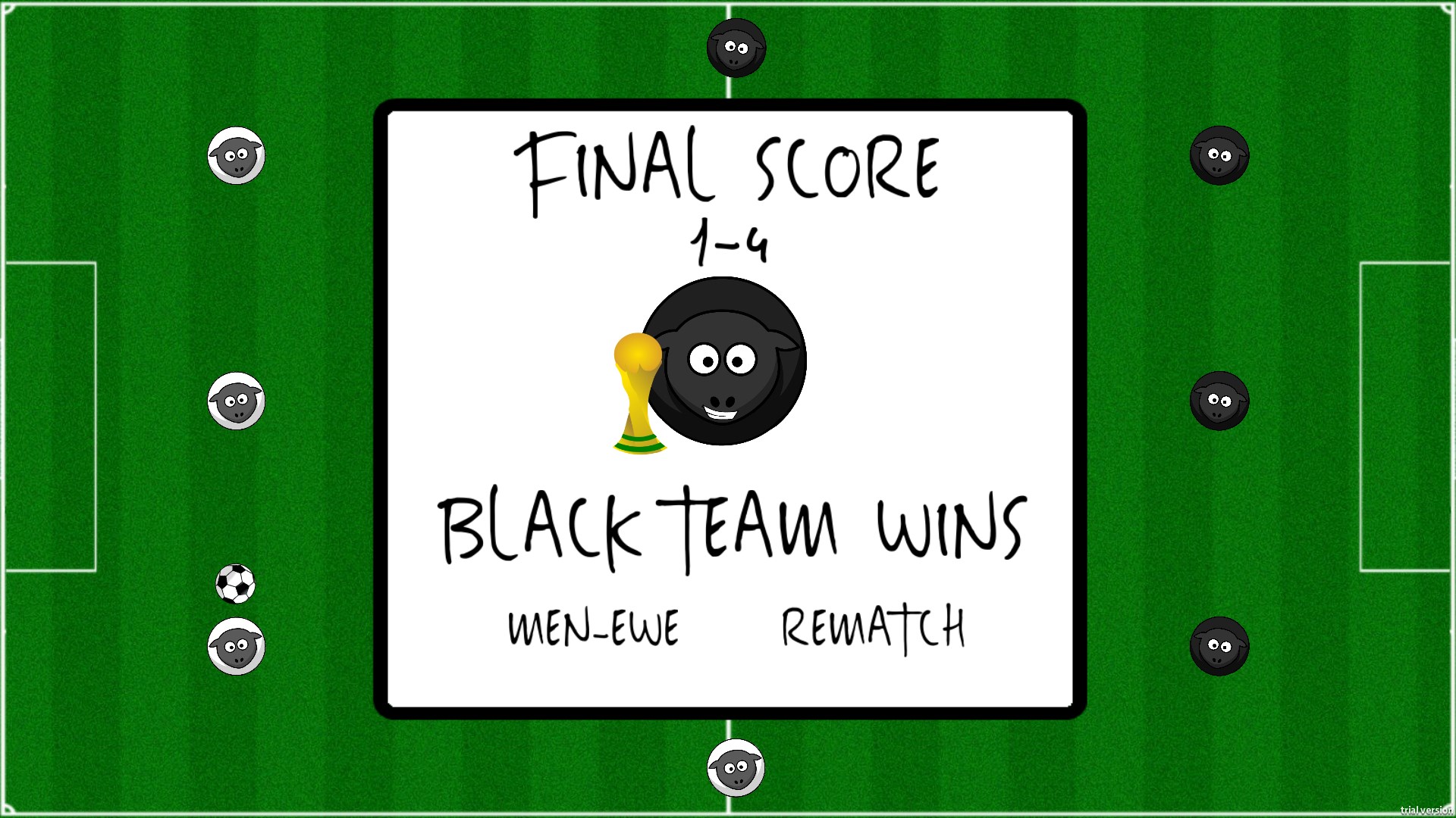Ready for some competitive, 2 player, arcade, sheepball fun?! Customize the game to exactly your liking. You can play with 10 balls! You can play with super speed sheep!